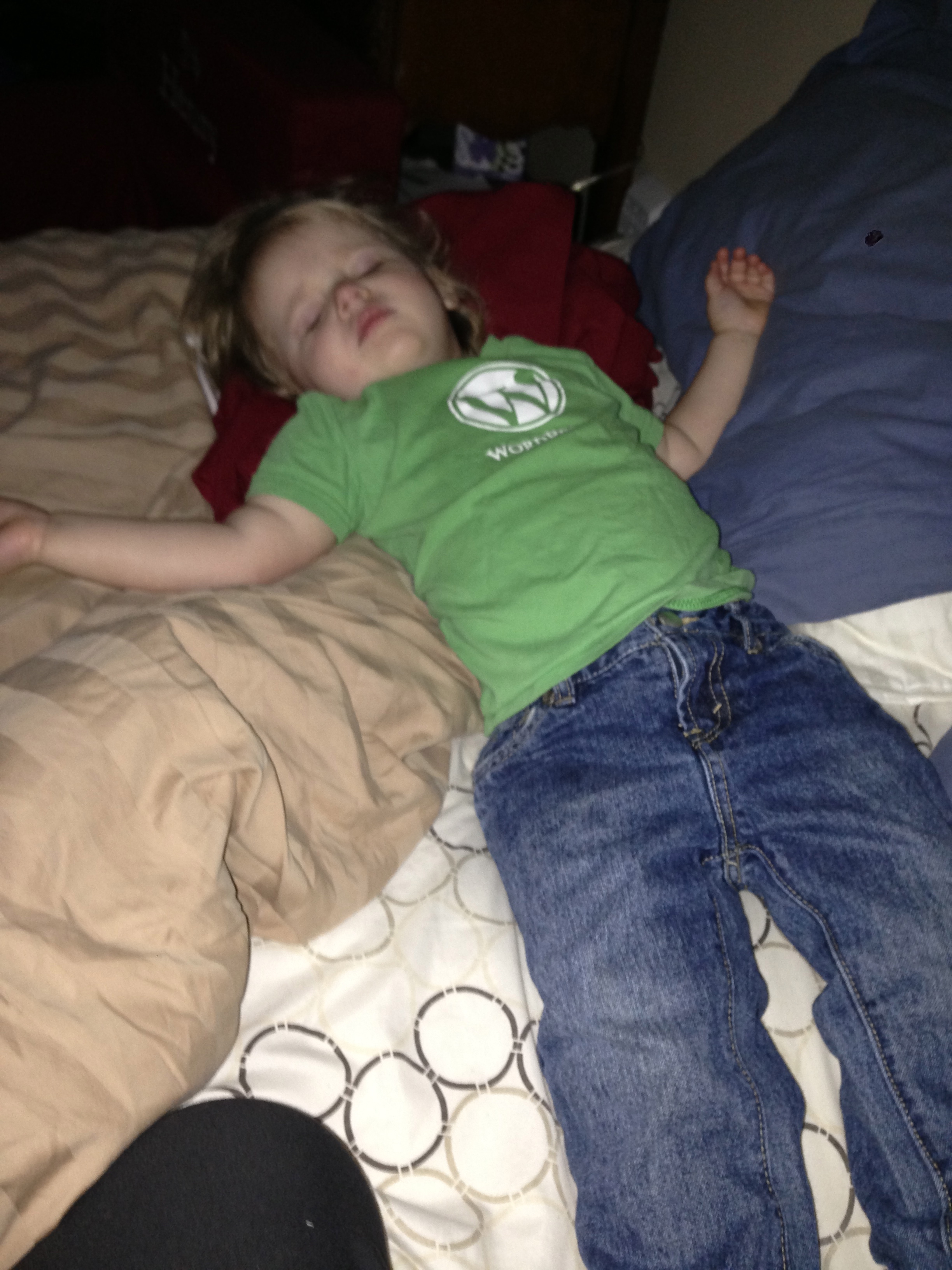 Again we waited for everyone else to deplane, and since we were near the front when everyone passed us, Eleanor said, “See ya! Bye-bye!” Henry was glued to the window pointing out all the trucks.