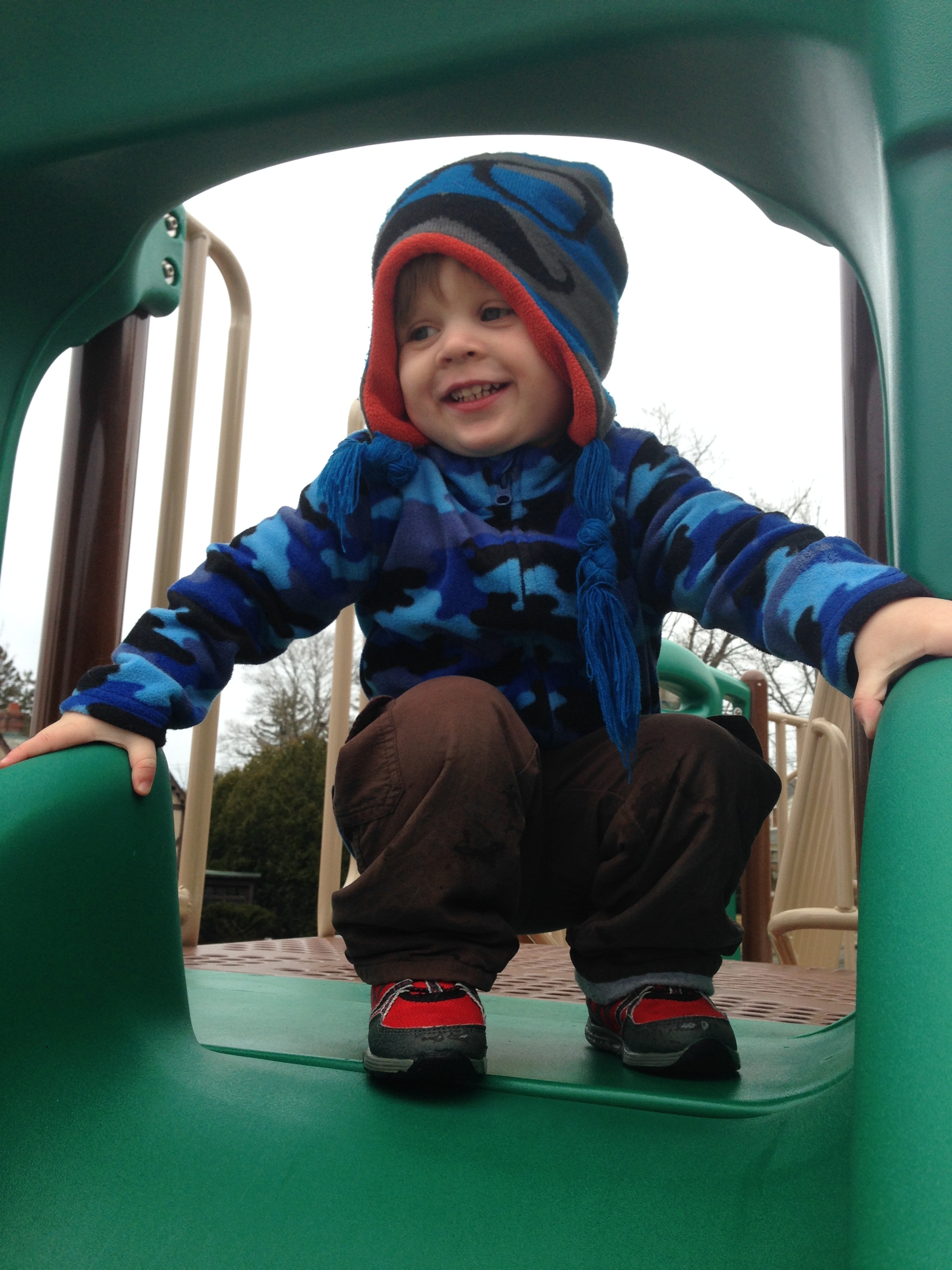 Yesterday I posted a photo of Henry at the park. I have a similar picture from earlier in the “spring” that I thought I had posted, but must not have. Here they are, side by side. Well, together, anyway.