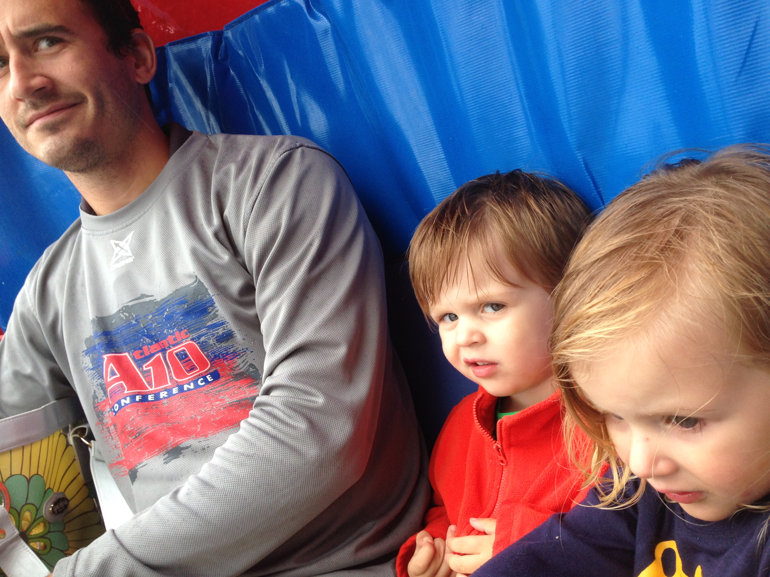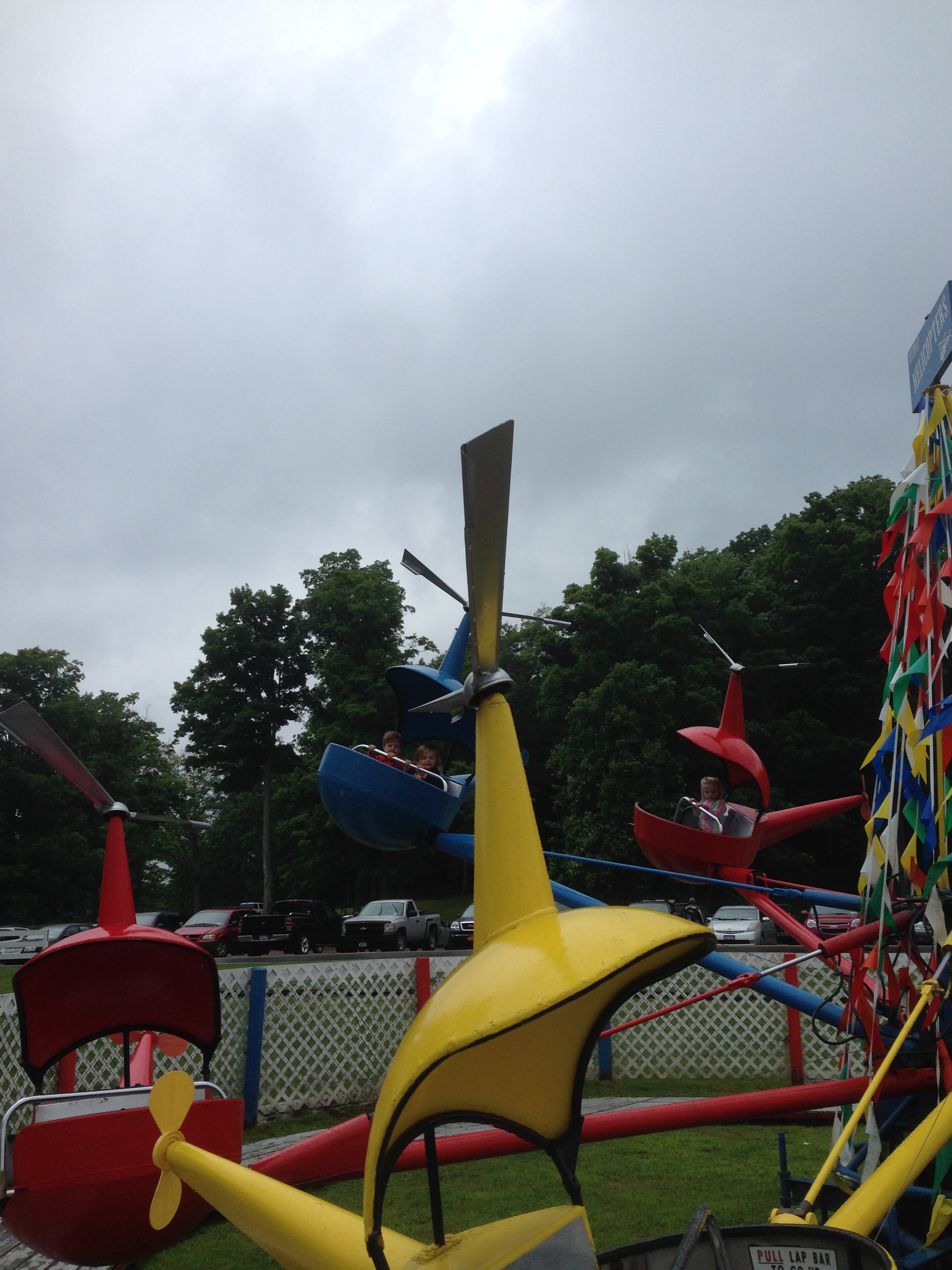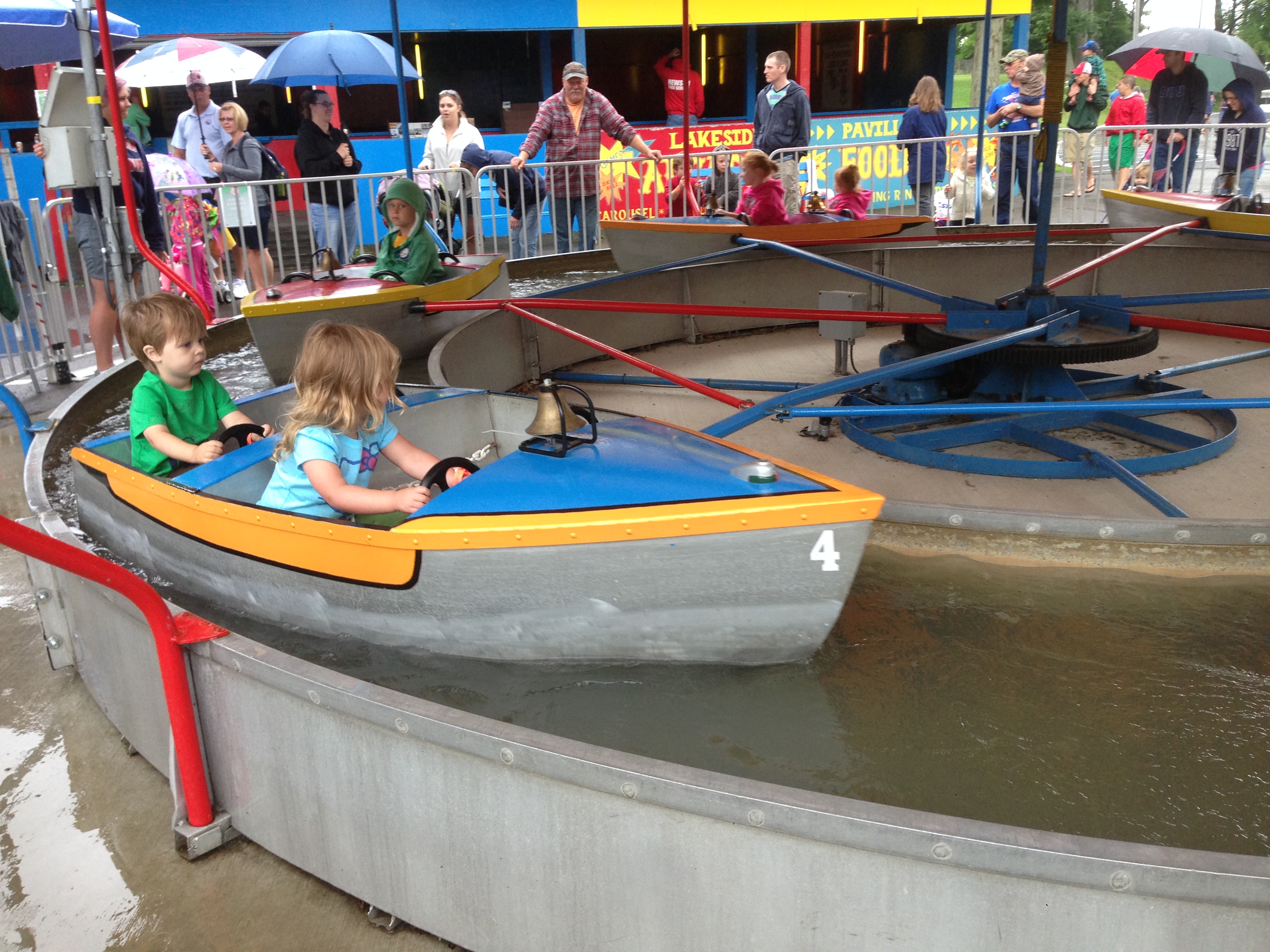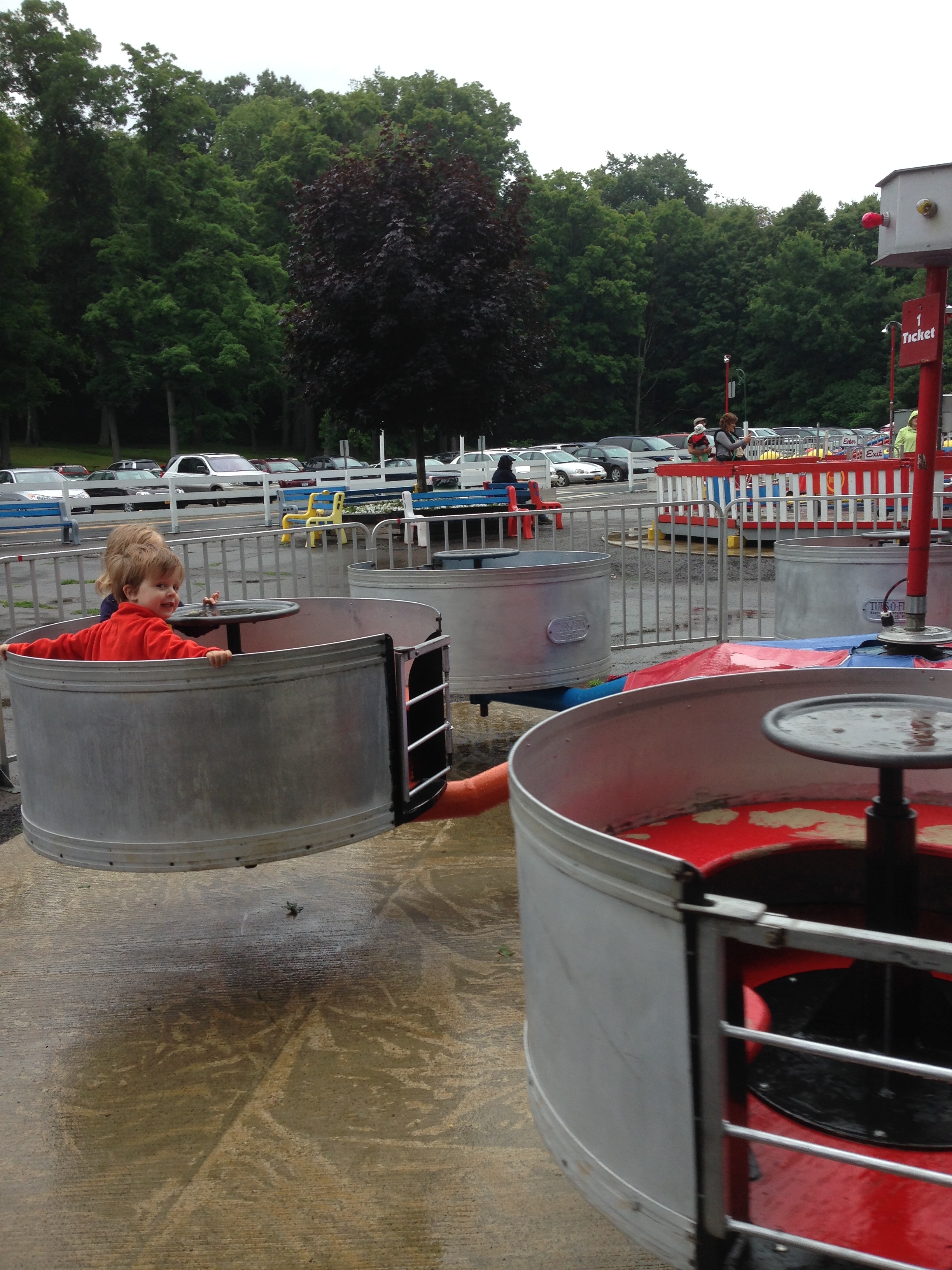 Saturday came up rainy, but we decided to risk it and go to Midway State Park anyway. Midway is kind of like a permanent carnival. But the rides are run by state summer help and are all like college kids. It rained the entire time (in varying degrees of intensity) but that really didn’t matter to the kids. We had outfit changes ready for them so they didn’t get too damp or chilly, but I think they might not have noticed either way.
