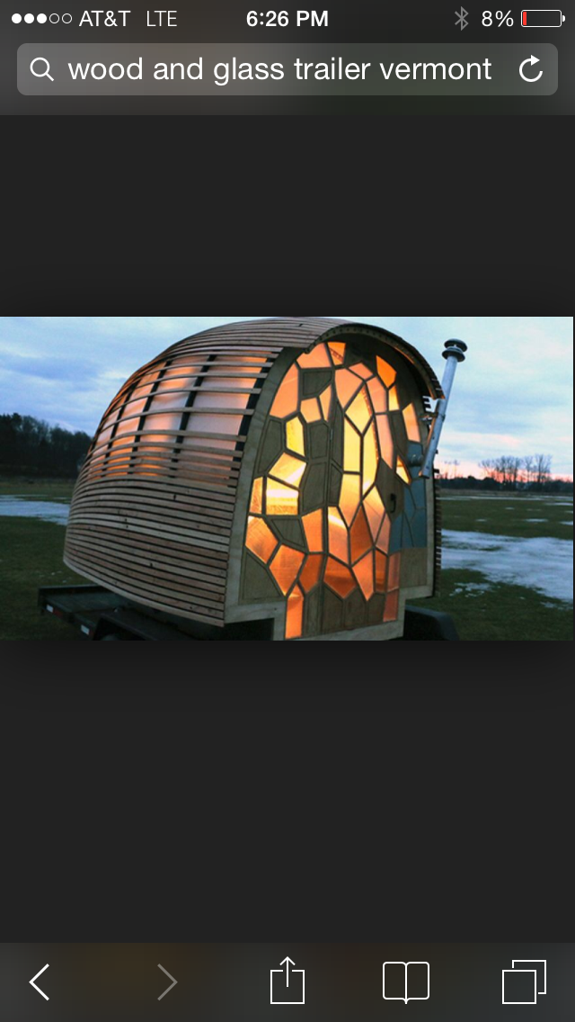 We saw the trailer had Vermont plates, so I googled until I found it. Our initial guesses of “tiny cathedral” and “chuppah” were way off. Instead, it is the result of a project executed by students at Green Mountain College. Read more here.