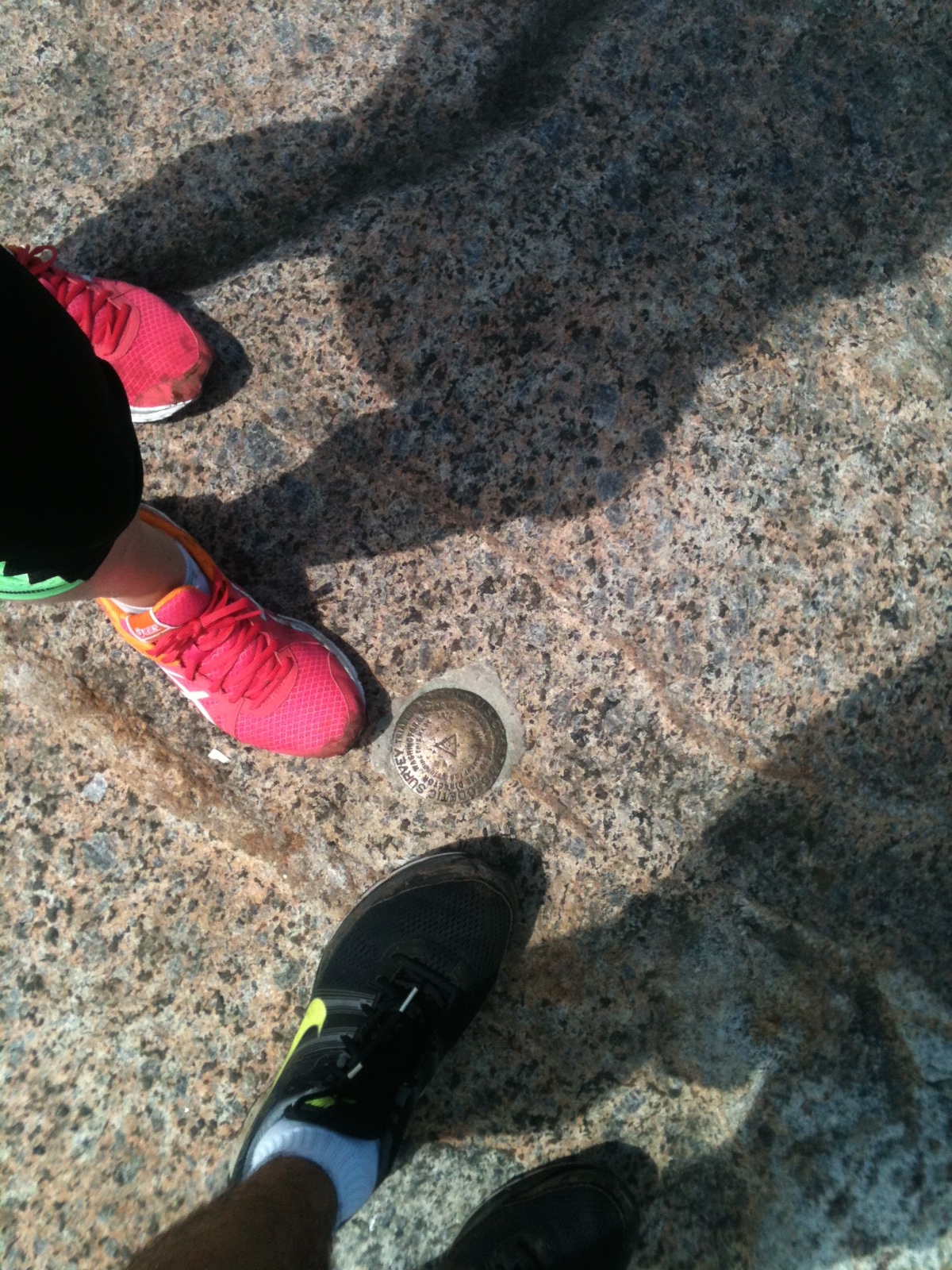 A tradition: taking a photo with the geological marker at the top of the mountain.