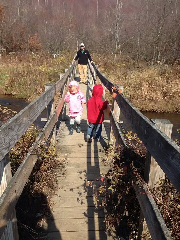 A few years ago, a historic rail bridge got knocked down by a fierce storm. It:s now a skywalk (which was actually terrifying, but the kids loved it). And we took a hike.