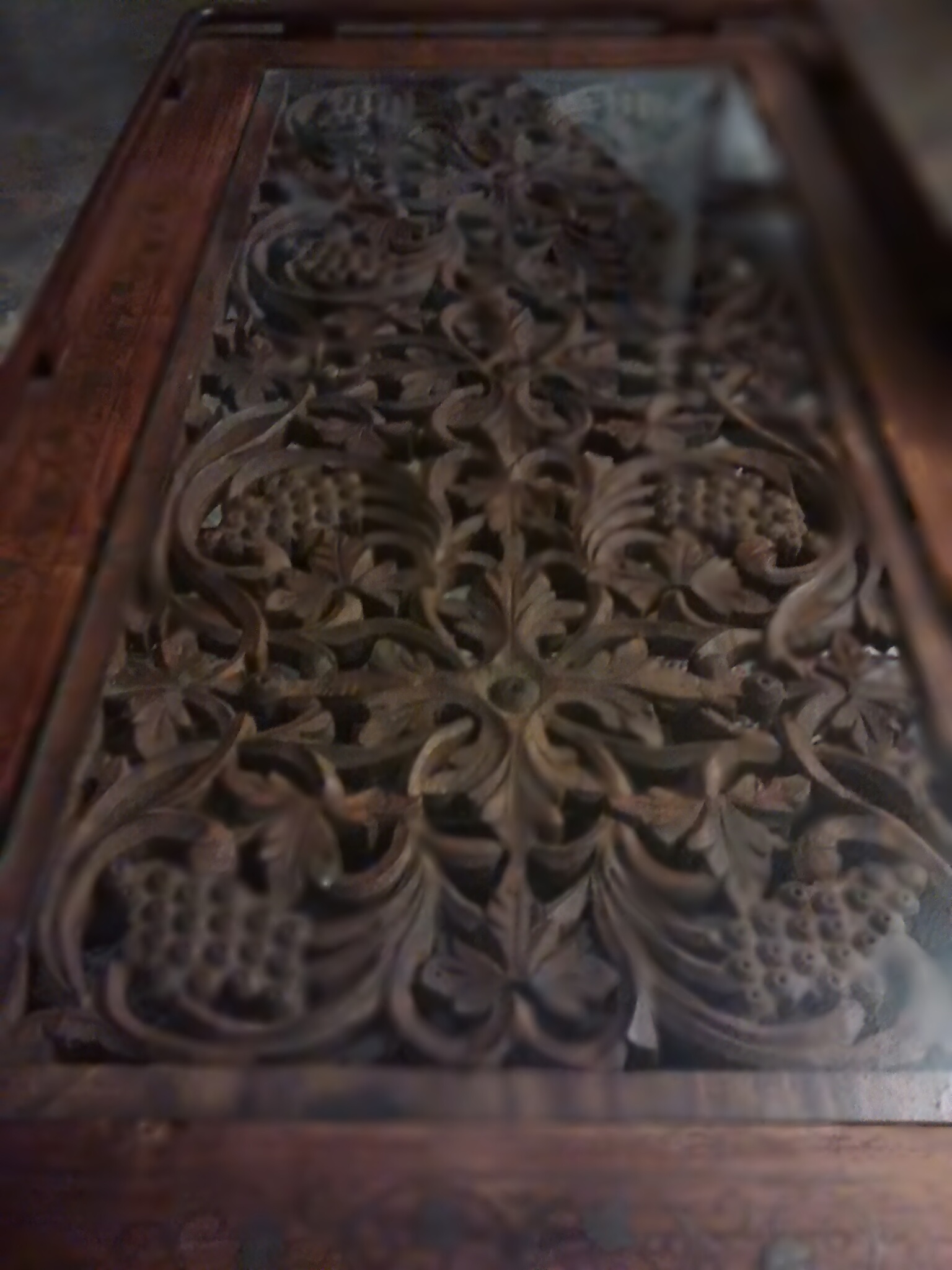While I took a photo of my parents’ gorgeous tea tray detail from Pakistan, my daughter pinned down my son and farted on him. And laughed.