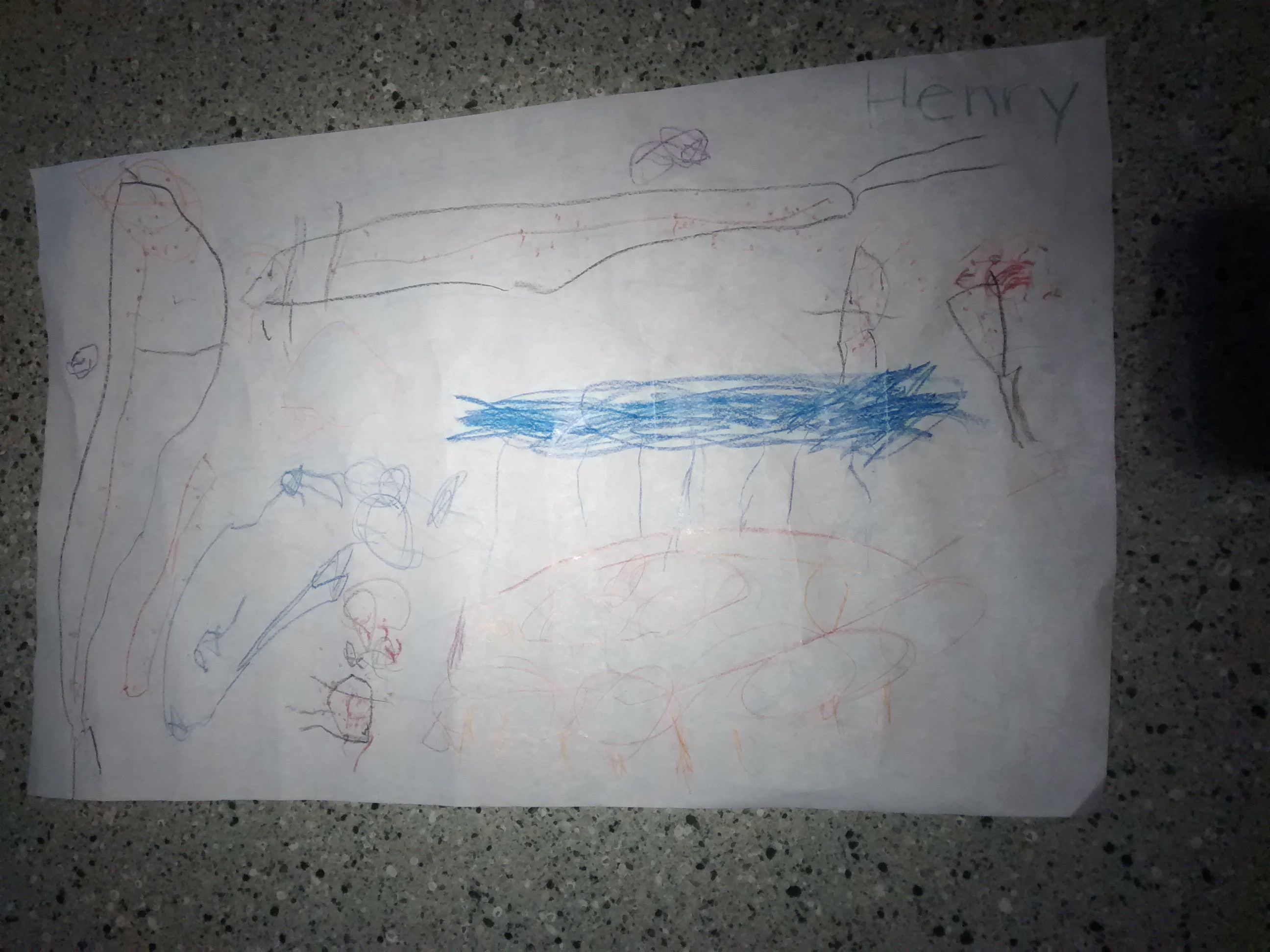 One of Henry’s favorite books is The Day the Crayons Quit, and I feel that this drawing really draws on that work.