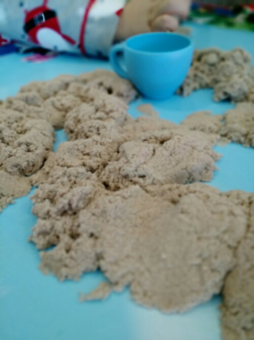 Playing with the kinetic sand first thing.