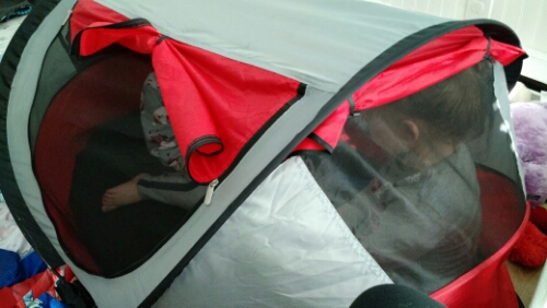 We are getting a lot of mileage out of these Peapods. They’re supposed to be a safe place for your littles to sleep when you travel, but we use them for ball pits, toy corrals, and (right now) a zoo for these crazy geckos. I’m not sure why they are geckos but there you have it.