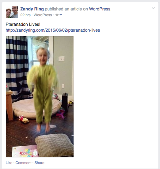 In a practical sense, this really saves me time. I post a snapshot of my life – it usually take about 5 minutes (80-90% of the time, I post from my phone). I don’t want to post it to WordPress.com, then post it to Facebook and Twitter individually. Traffic on my site seems to be pretty steady, which makes me happy. But really, I don’t mind too much if folks only check my posts via Facebook or Twitter. I use these services to stay in touch with people, so if that’s where they’re going to catch up on people in the more remote regions of their lives, well, I’m happy to meet them there.