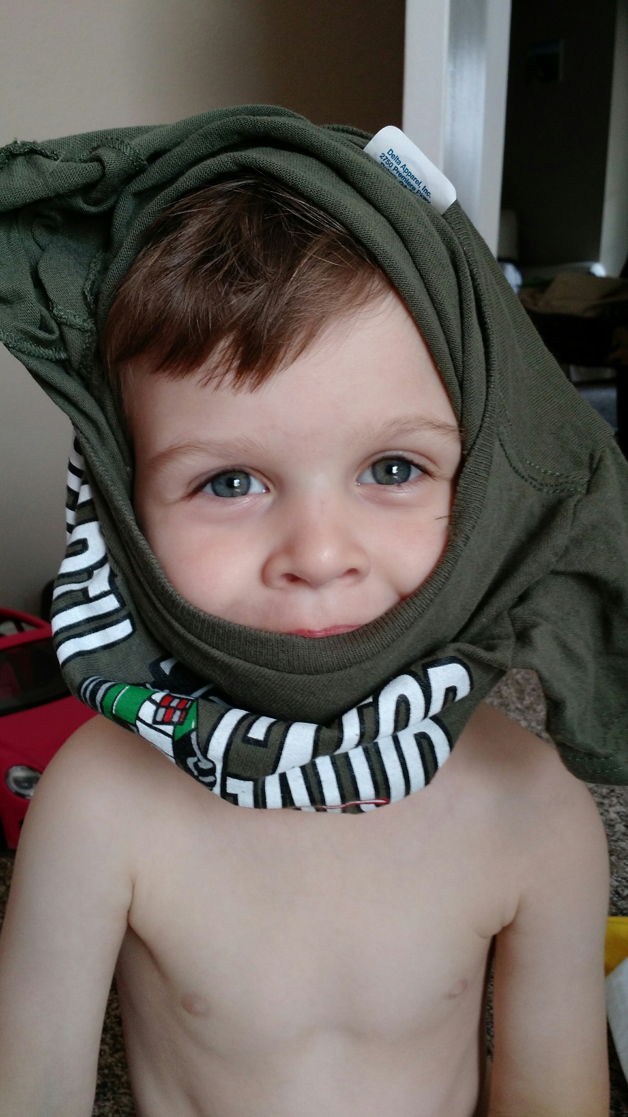 We have a series of T-shirt on head photos, but this one is so far the best.