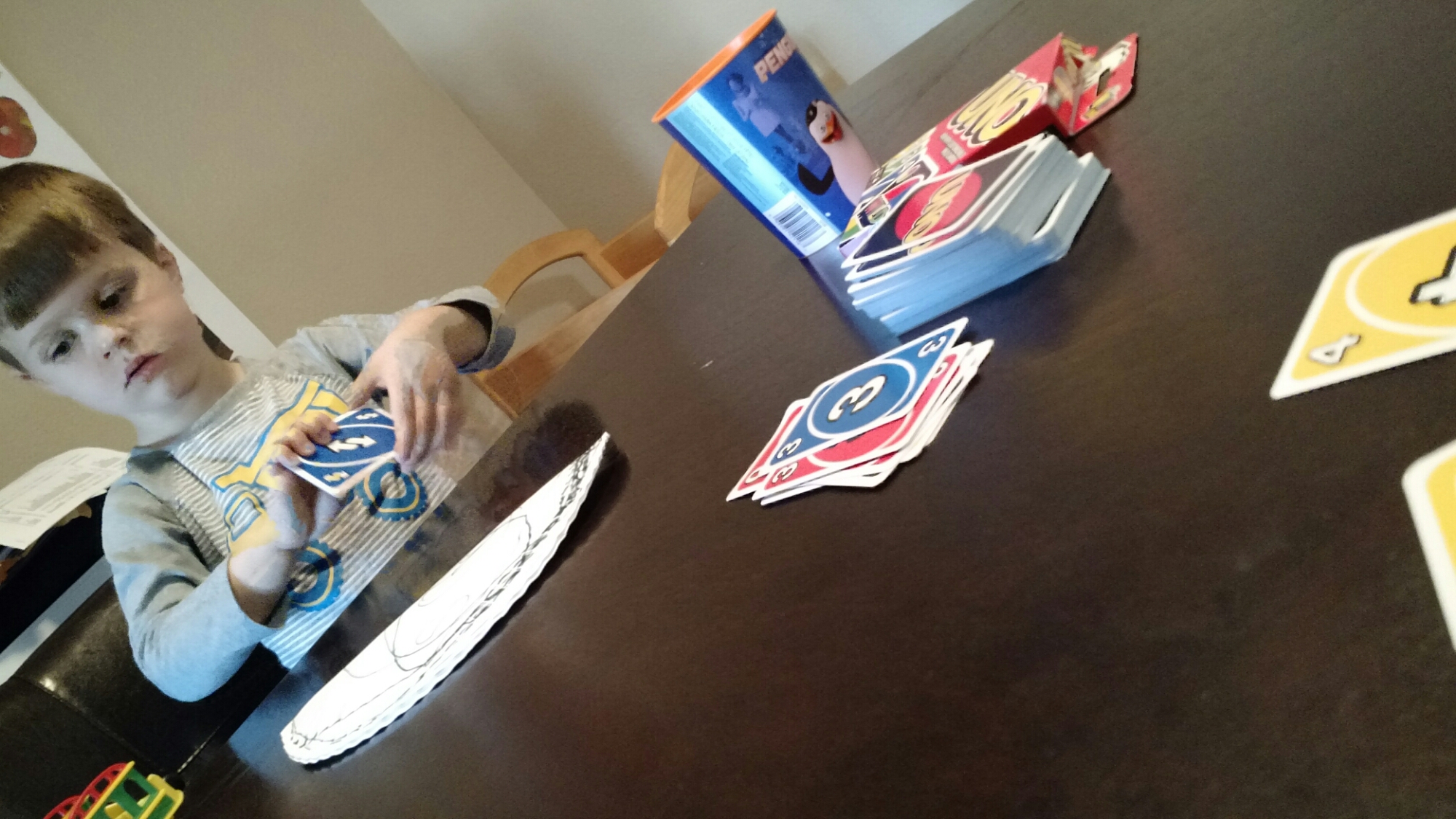 Only after investing time in teaching the kids to play Uno do I realize that it’s for ages 7+.