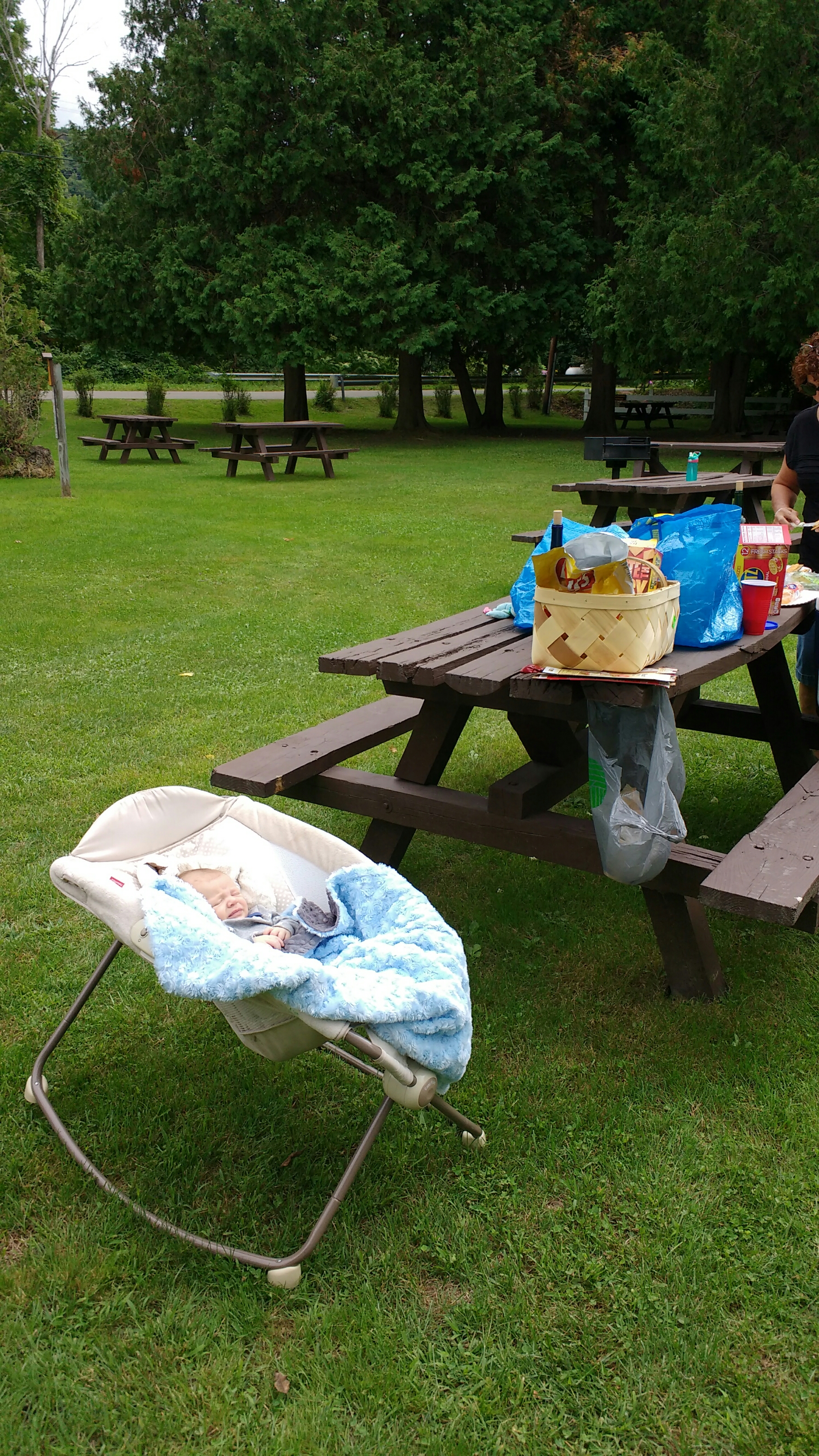 Enjoying a casual picnic at a fish hatchery in upstate NY.