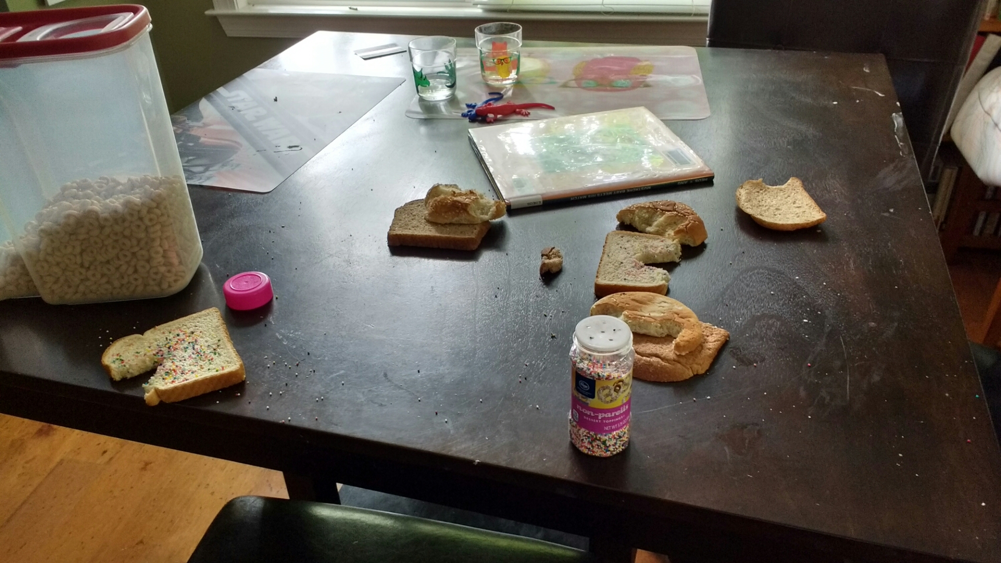 Finally, the twins quietly got up and made themselves a reasonable breakfast, full of healthy choices and admirable restraint.
