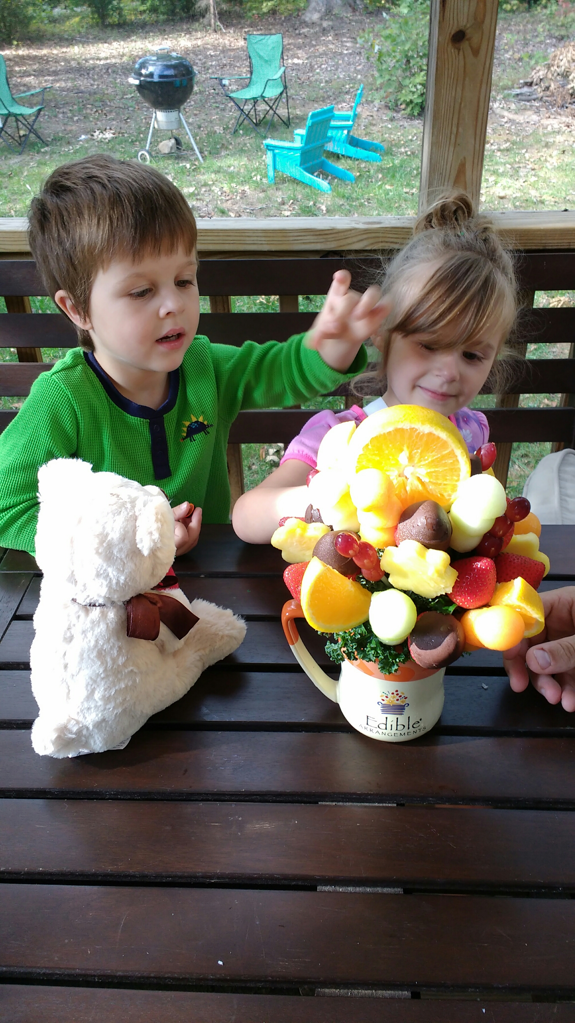 Eleanor’s aunts, uncles, and cousins on Bob’s side sent her a lovely Edible Arrangement complete with teddy bear and balloon. She loves it!
