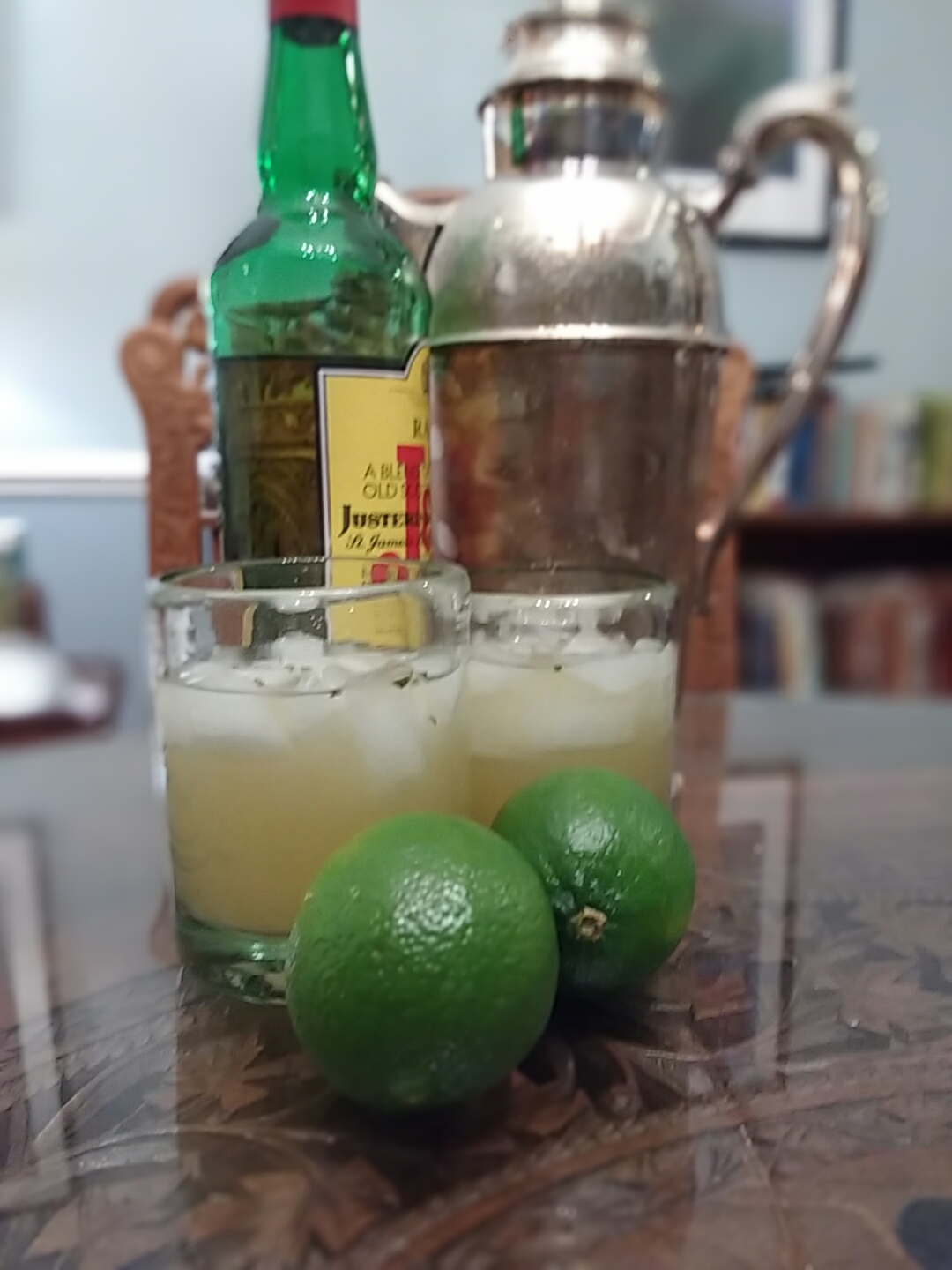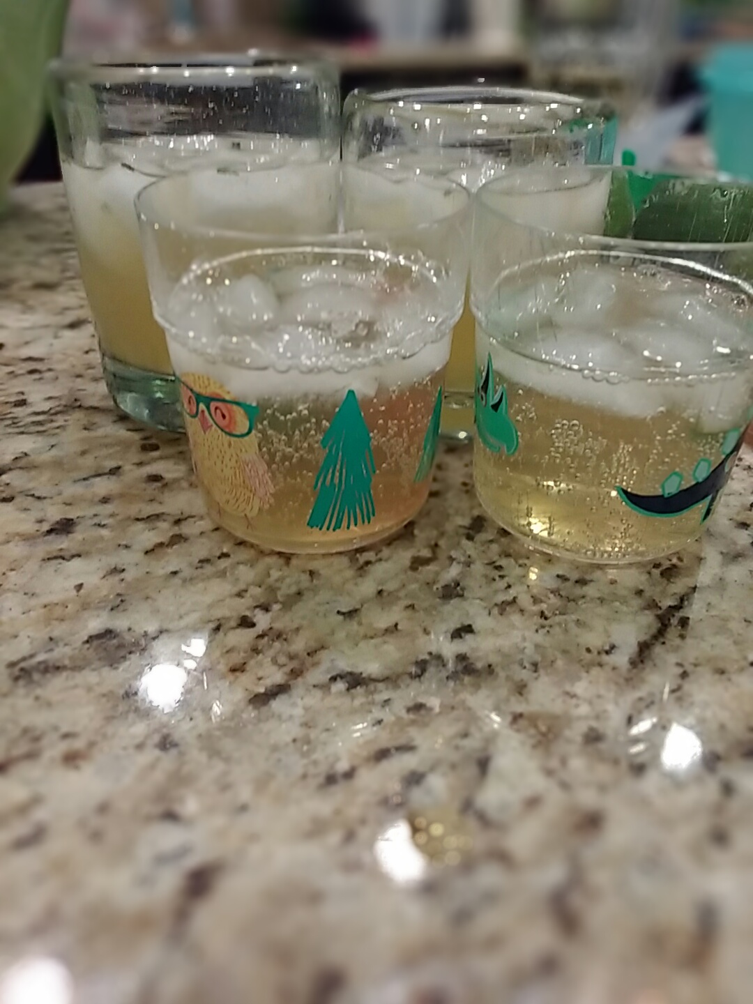 We are having a family party, so we blew up some balloons and made some drinks. Whisky green gimlets for me and Bob; and ginger ale mocktails for Henry and Eleanor.