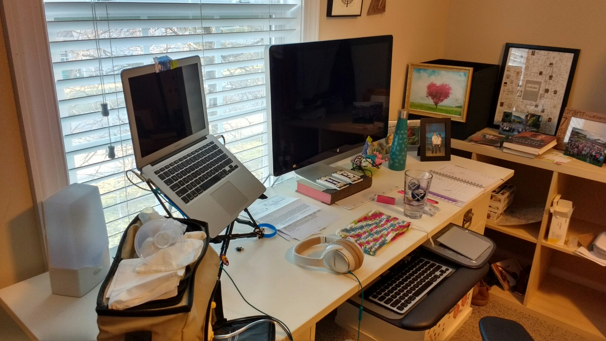 Over the weekend, Bob and the kids helped me move my office into the closet. We have a very big closet and I’ve been saying for awhile that I want to put Grant in there for a nursery. Unfortunately it gets too chilly in there for him, but it’s perfect for an office! Another bonus is that it’s more removed from the kids, so I can work without hearing them (or people hearing them through my headphone mic).