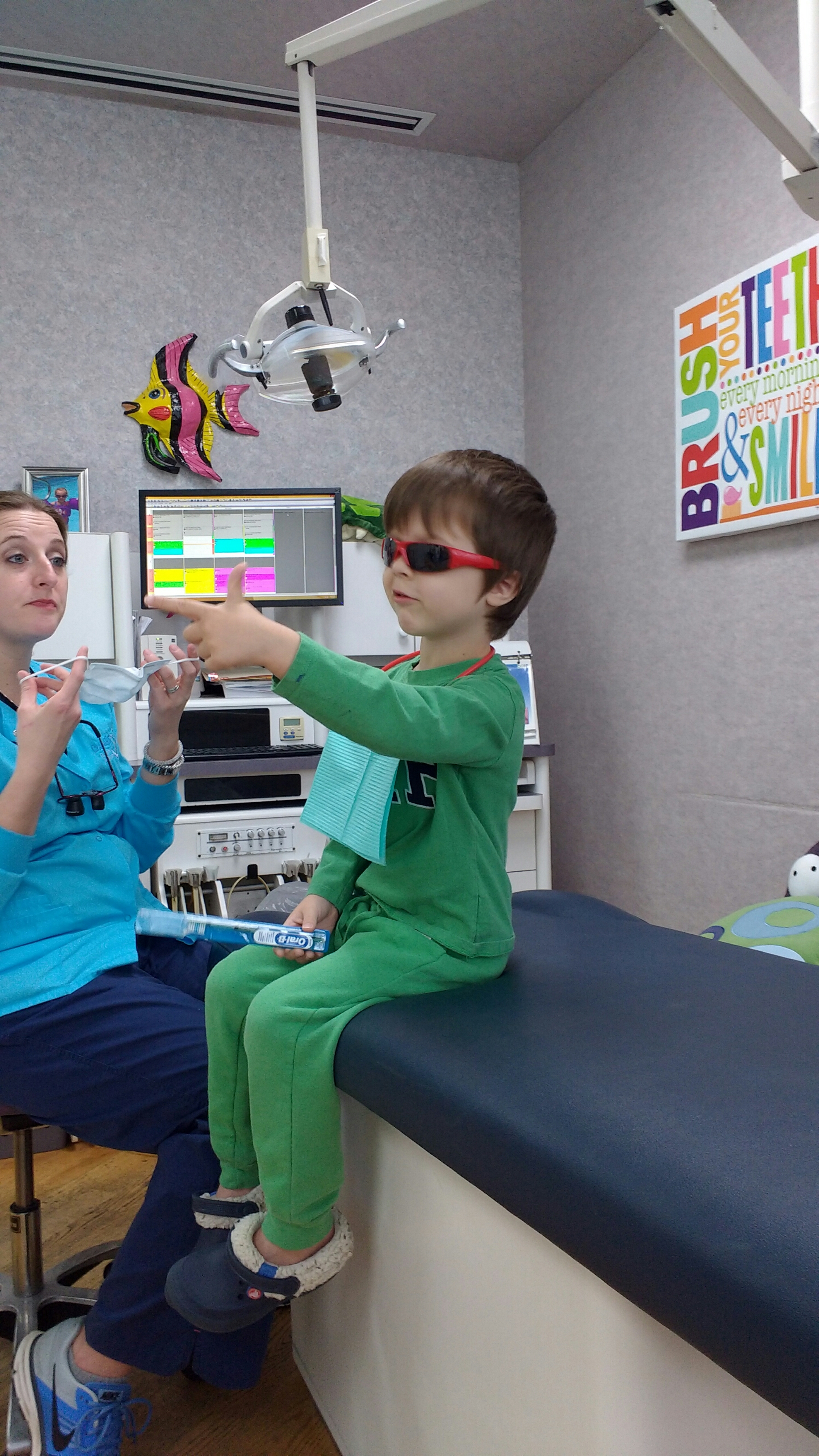Today was the twins’ first trip to the dentist. Yes, they are 5, and this is the first time they were able to figure out how to make an appointment. They have no cavities! They really enjoyed the experience, I’m happy to report. We went to a place that specializes in pediatric dentistry (Chapel Hill Pediatric Dentistry) and they were amazing. Eleanor has a 6 year old molar breaking through! And one very slightly wiggly tooth.