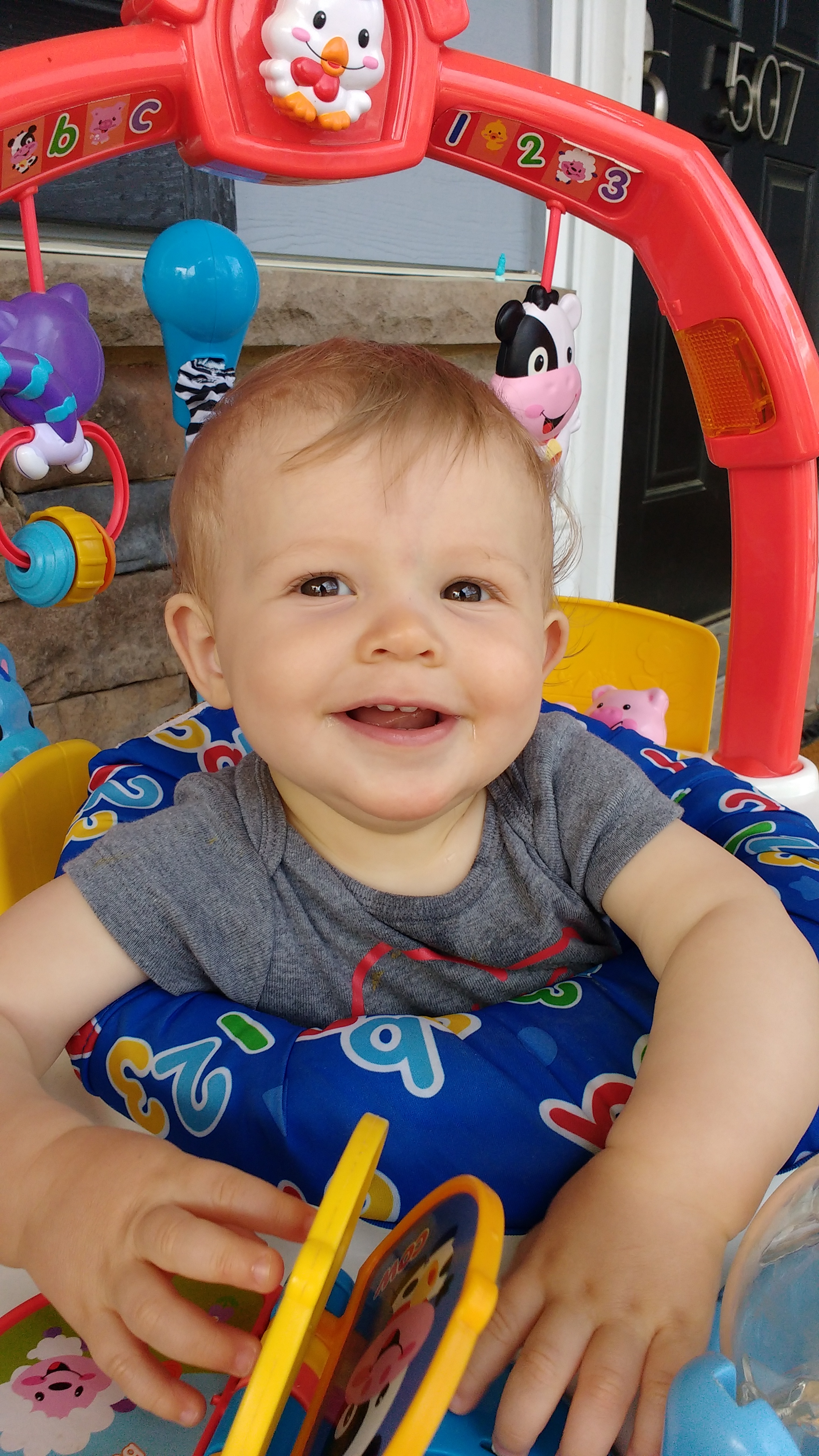 My sweet boy has been a little bit clingy, but I have to say he is the easiest little potato. Yesterday he spent the entire afternoon with a bunch of grownups as all the neighbors happened to congregate at our neighbors’ house, and he was a contented buddy. And today, he was with the nanny most of the day, but we took a little break for him to model some new pants and get some adorable photos taken. Now he and I are hanging out on the front porch while his brother plays out back with one set of neighbors and his sister is at another neighbor’s house.