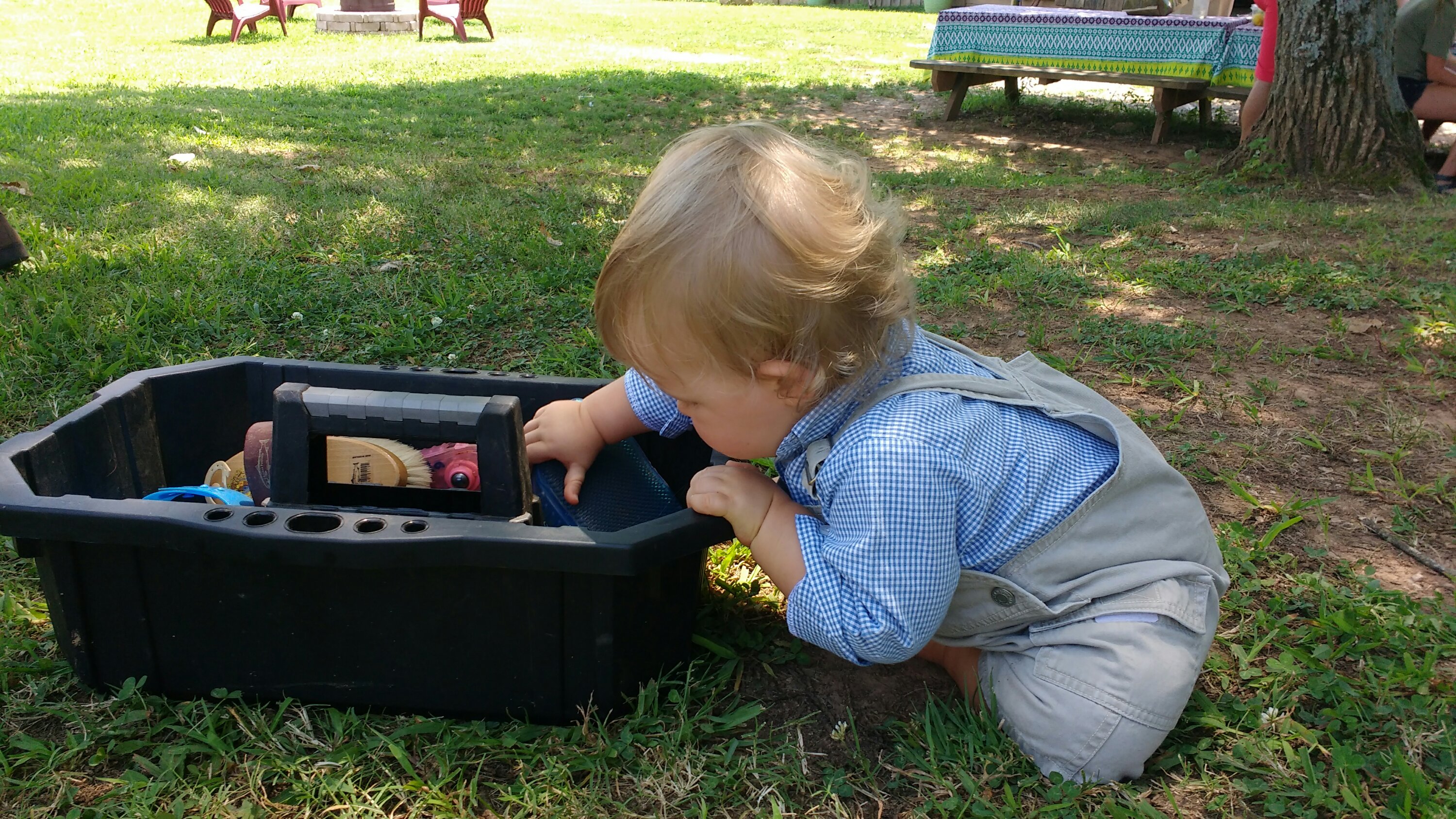 We went to a birthday party at a farm, and Grant really got into exploring, and also eating rocks and sticks.