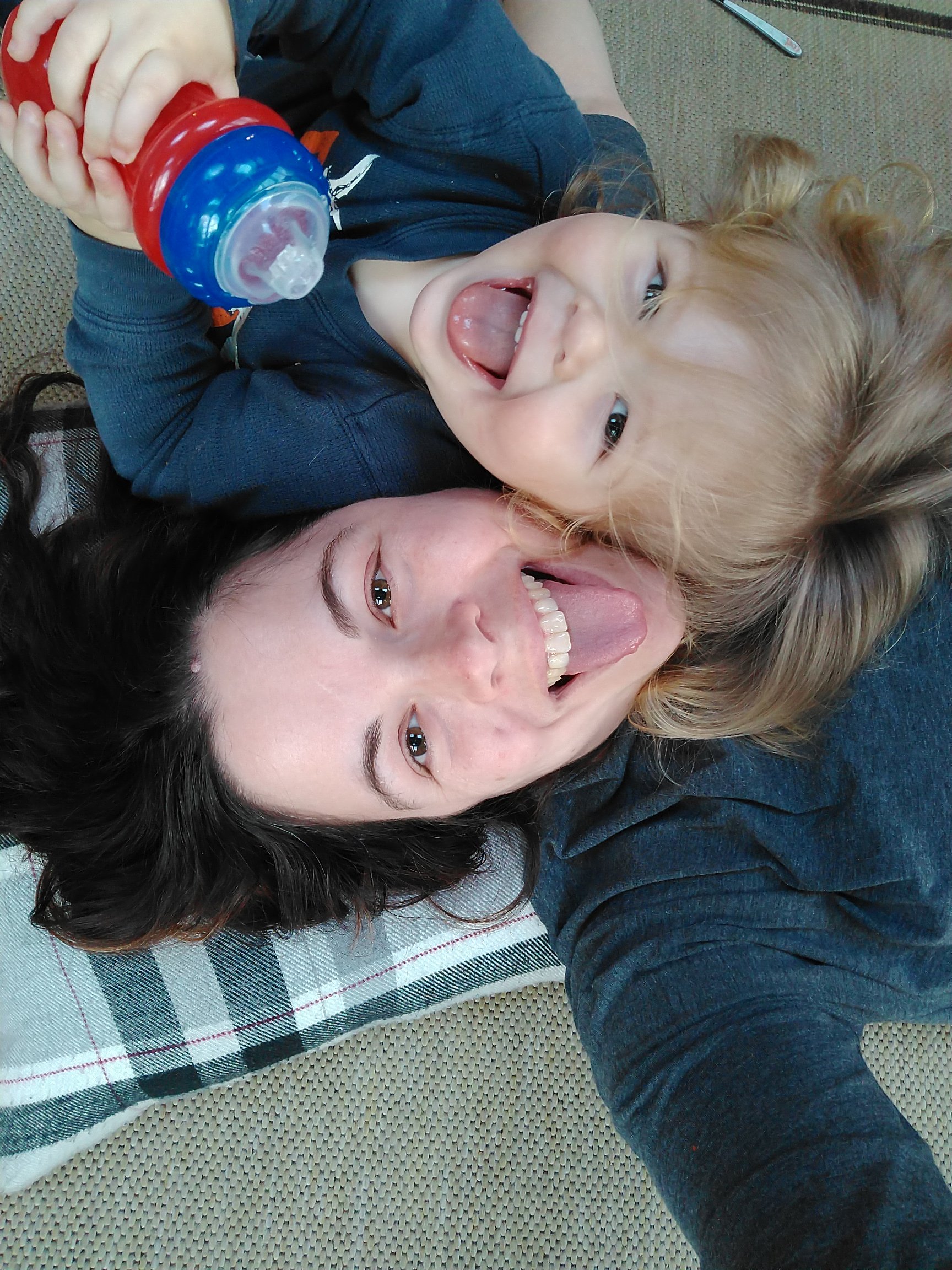 I took off sick yesterday. I felt like trash (or that perhaps trash had come to live in my throat). I rested all day, but once I brought Grant home, my rest time was over. My strategy was to lie on the floor because it’s the easiest way to keep him amused. Then I thought about how I could make a post about how moms don’t get sick days – you’re always “on” when the kids are around. So I tried to sneakily get some photos of Grant crushing me under his substantial weight – very “woe is me” etc etc. Unfortunately, Grant ruined it all by spotting the camera and being super cute and charming, and we ended up having a lot of fun together.