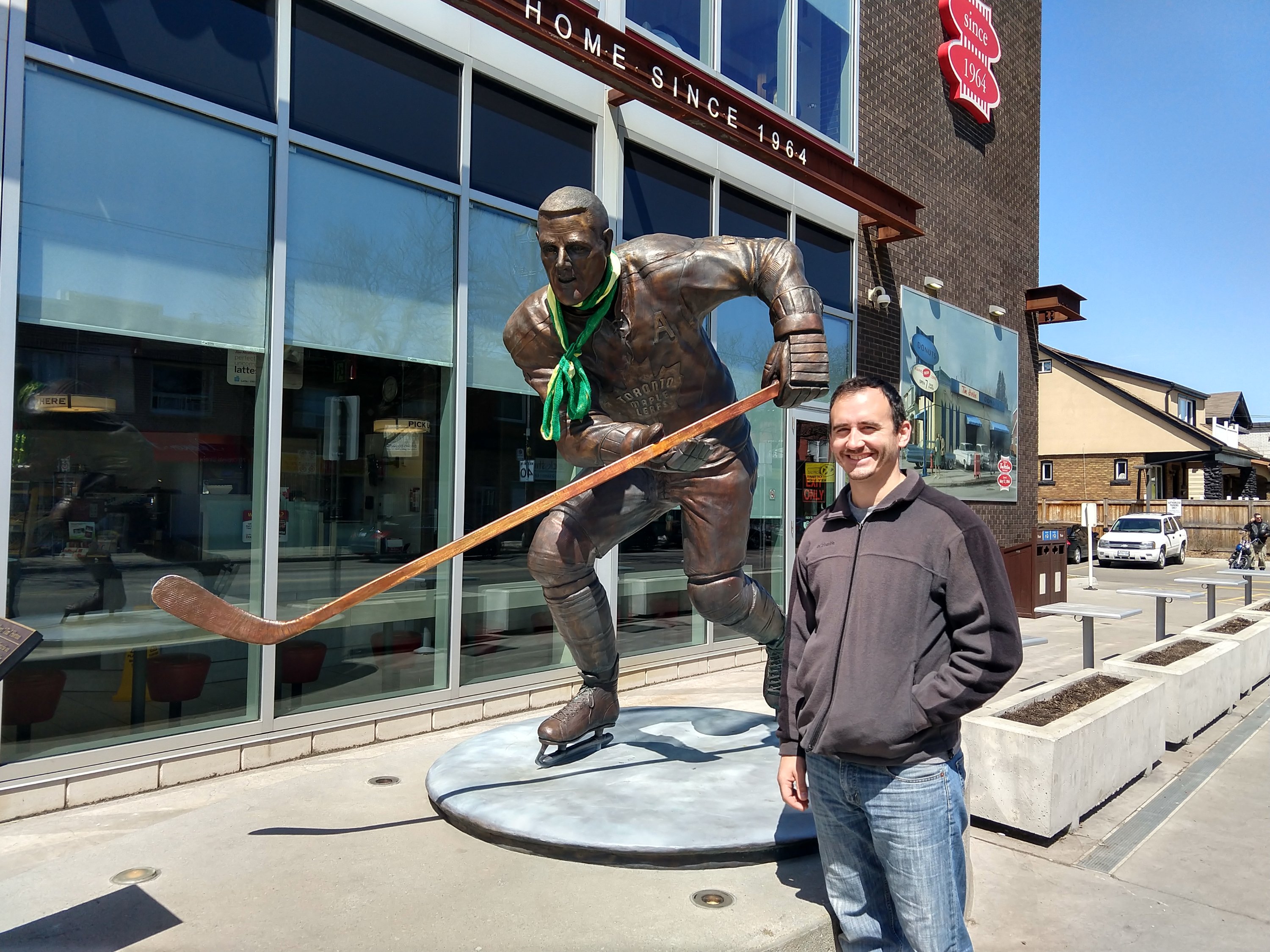 Yesterday with Denise we accidentally ended up at the first Tim Hortons, which also has a museum showing all sorts of things from back when Tim Hortons was just called Tim Horton. There was also a statue of Tim Horton.