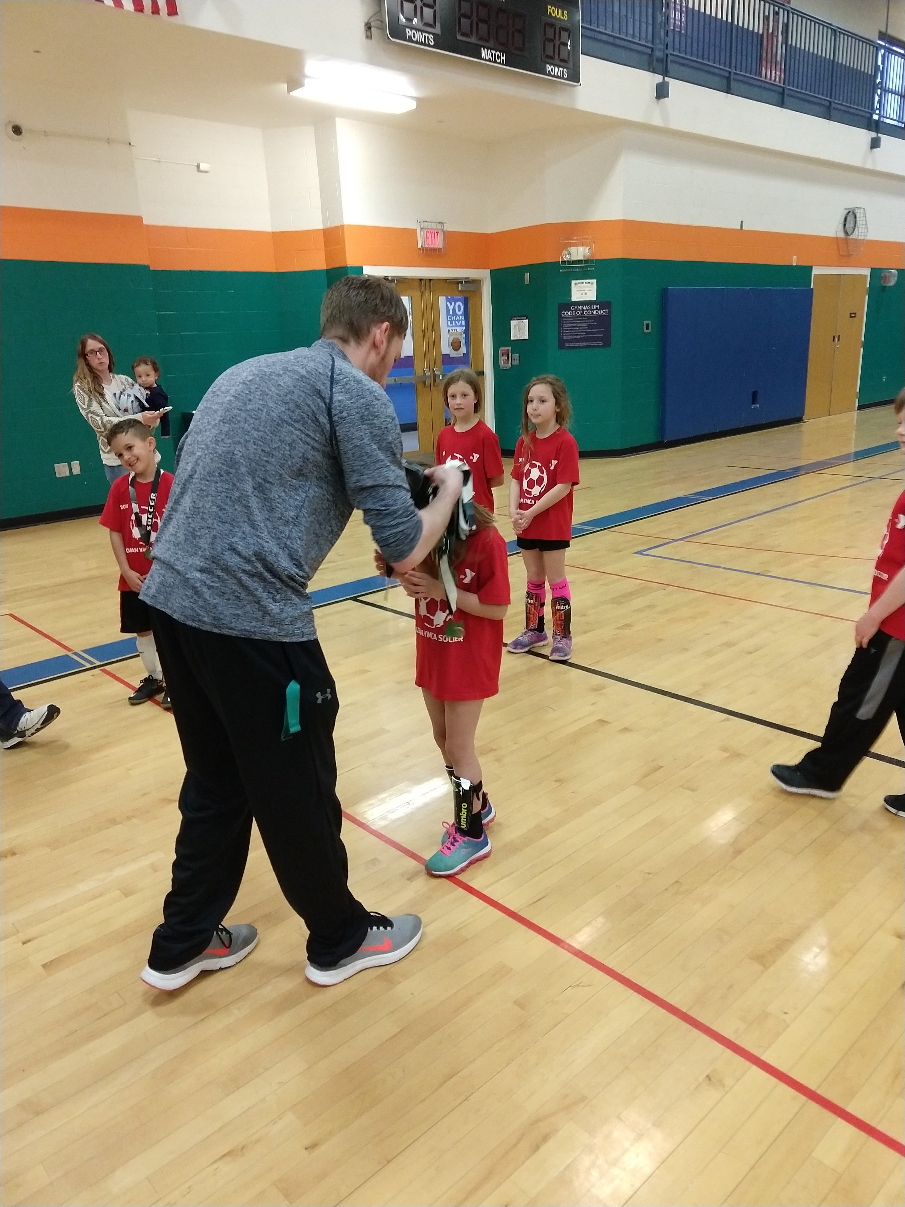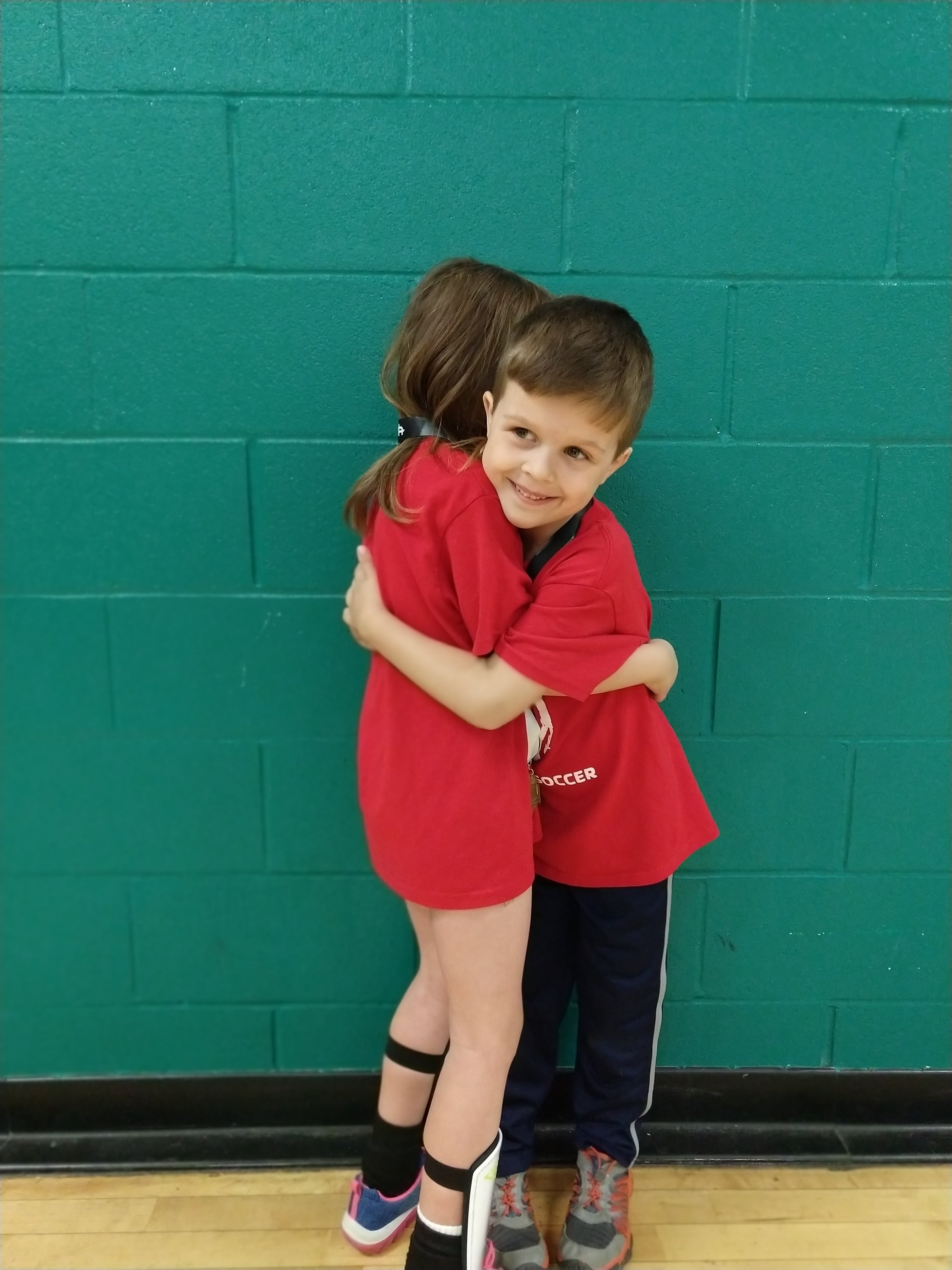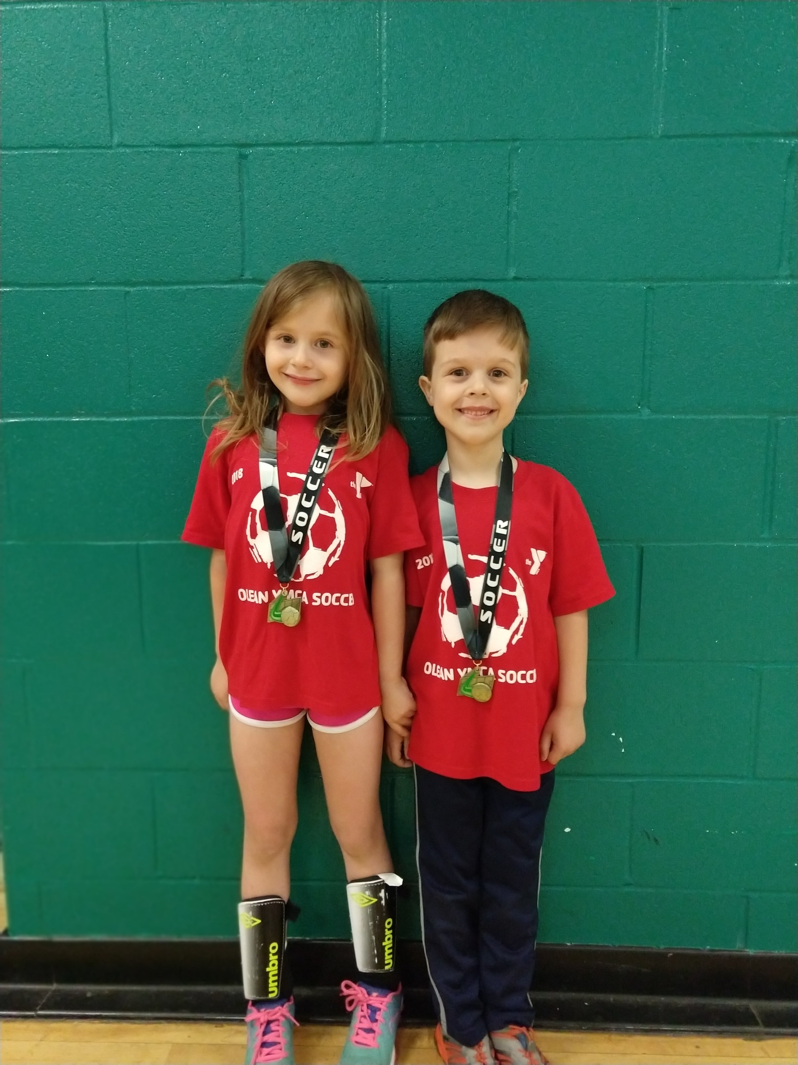 The past 8 or so weeks the twins have been playing indoor soccer at the Y. Fortunately for my sanity – but unfortunately for their team – they were both on the same team, the Reds. I say unfortunately, because they both take after me in their grace and athleticism on the pitch. When one of them wasn’t actively pouting, the other might be gazing at the ceiling or waving at me. At least half the goals saved were purely accidentally. They took many breaks during play to hug or hold hands. It sounds sweet and charming because it was. They’re six and have never played before. They had a lot of fun and learned quite a bit. Yesterday were their last two games of the season, and they all got medals and to shake hands with the coach. They were so proud.