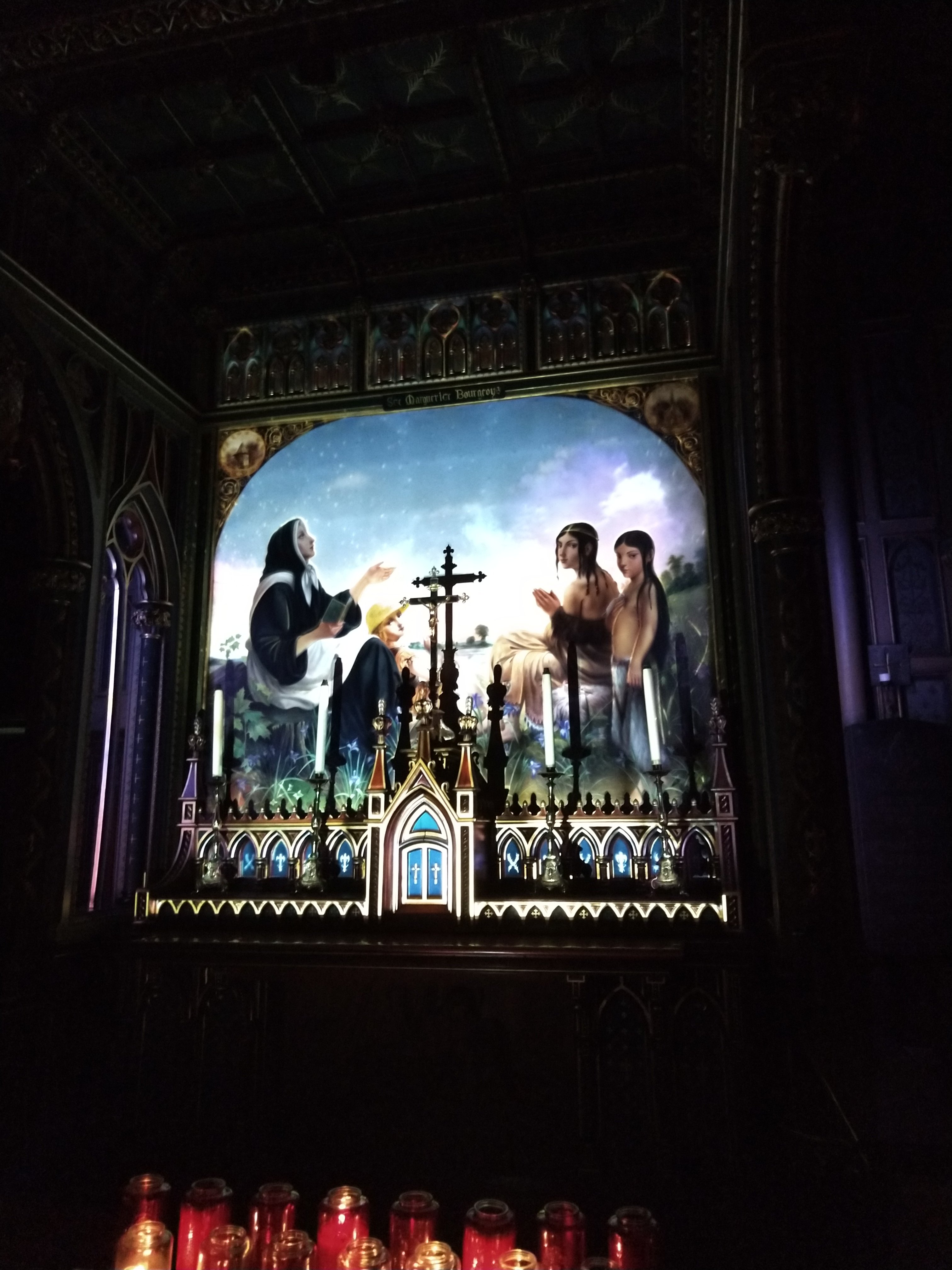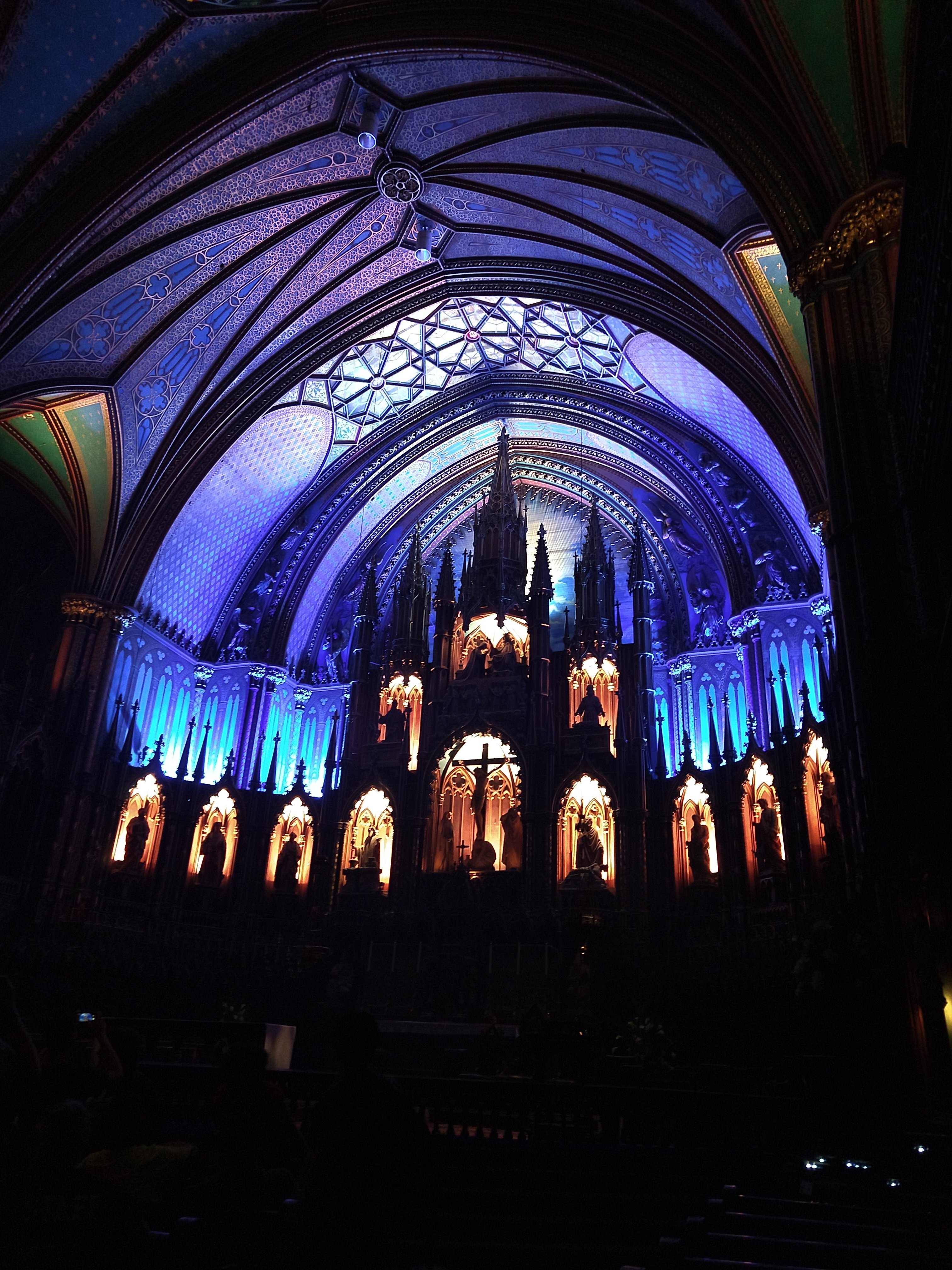 This afternoon one of my co-workers and I headed to the Basilica to see Aura, a light show. The rest of the team had gone the day before, and I was pretty curious. It was really interesting – the church itself was pretty, but the lights and music made it very mysterious-feeling. The church was mostly dark, so it was hard to tell how big it was, and there were rustlings and bird chirps that made you feel you were in a forest at night.
