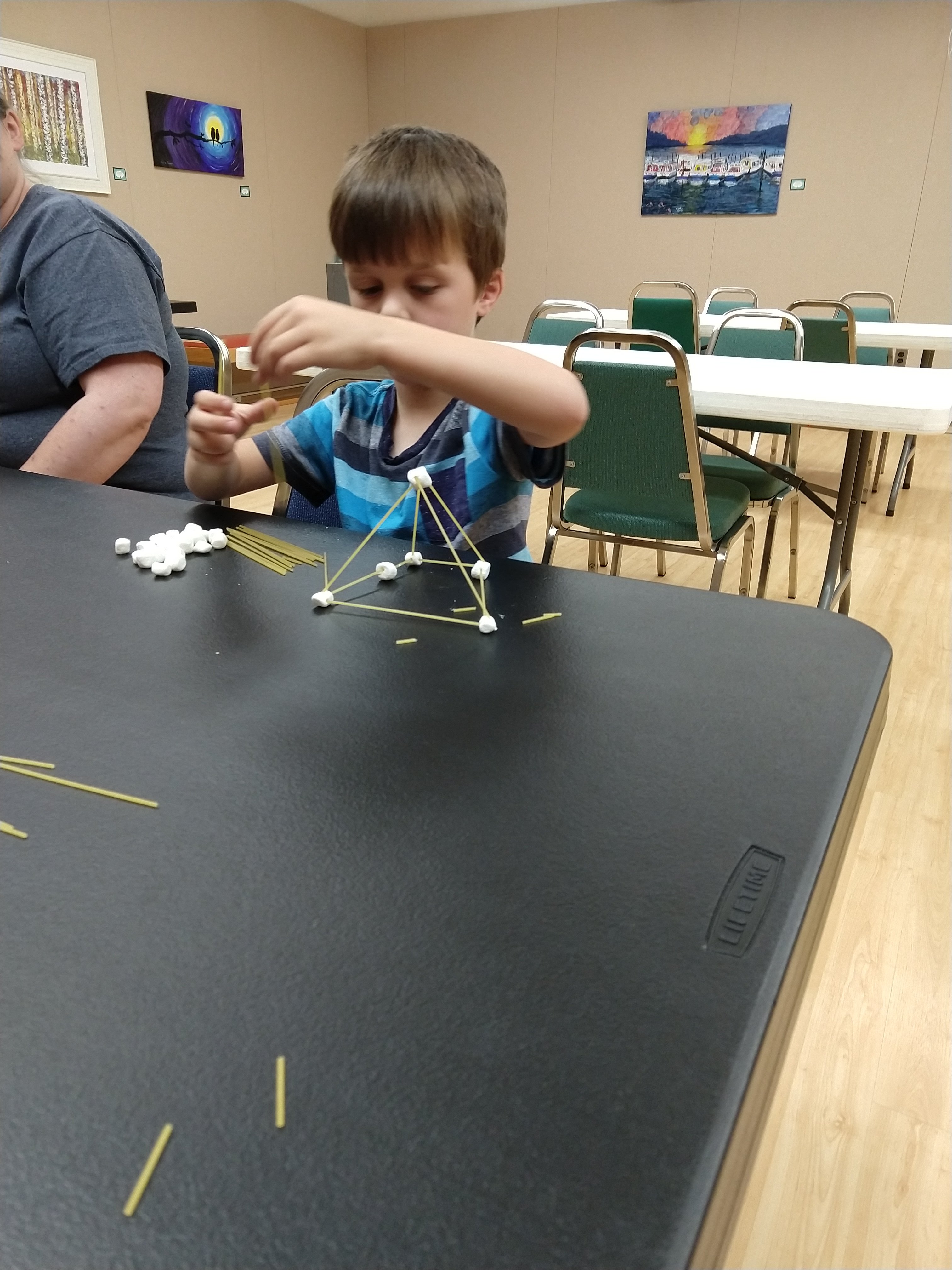 First project: marshmallow/spaghetti towers. Henry is off to a strong start!