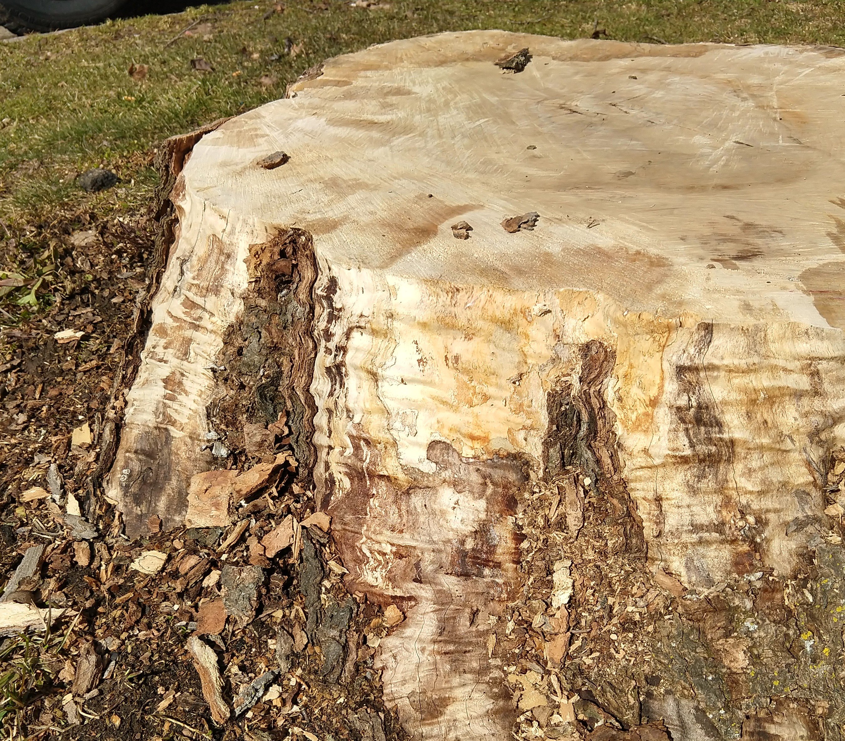 A week or two ago, I was walking home and I passed a tree stump near our house. The tree was a big one; one Grant likes to try his luck against regularly. I noticed that the tree was actually rippled under the bark. Like a book dropped in the bath and left to dry.