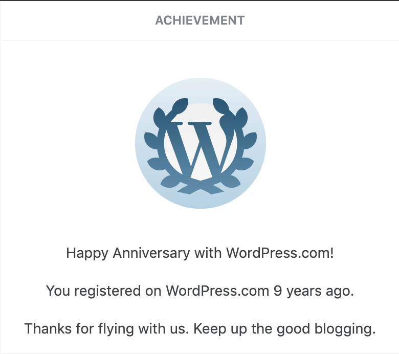 9 years ago, in 2010, I registered with WordPress.com. I have had 2,012 posts on this site in that time — in part because I merged an old site into this one when it was time to evolve it.