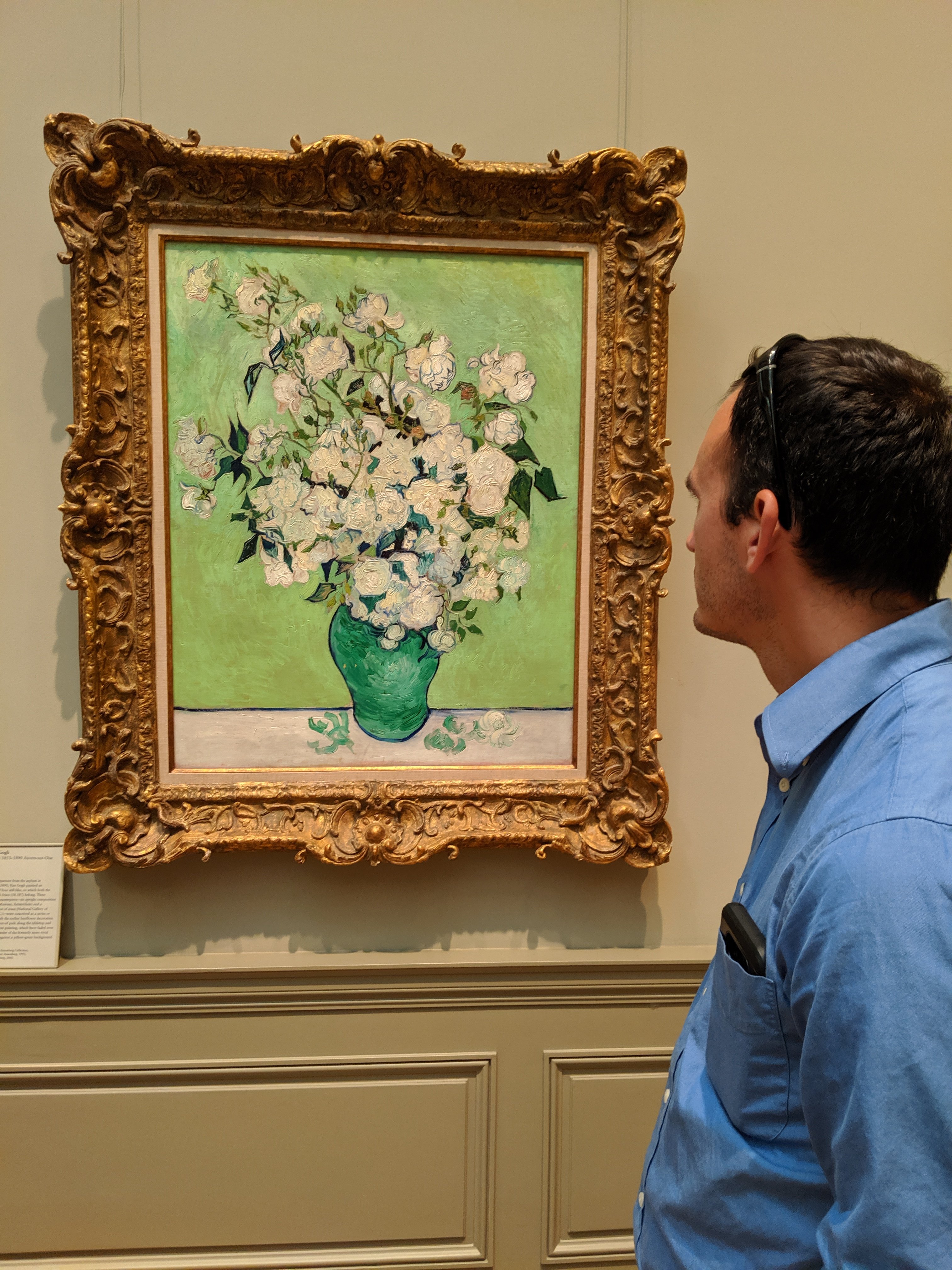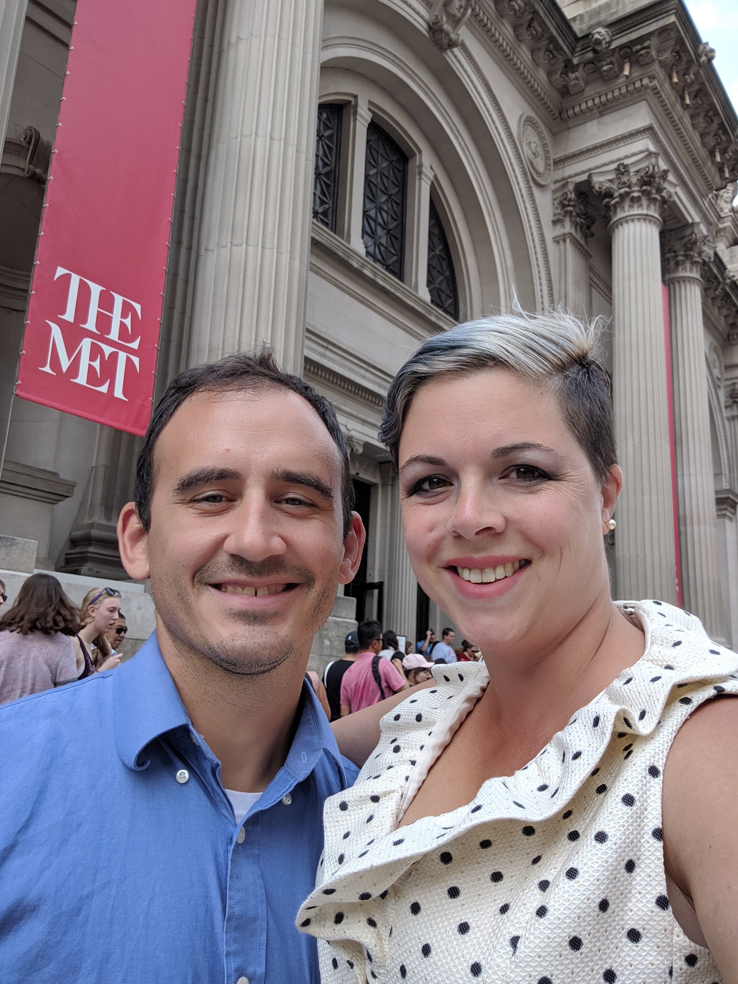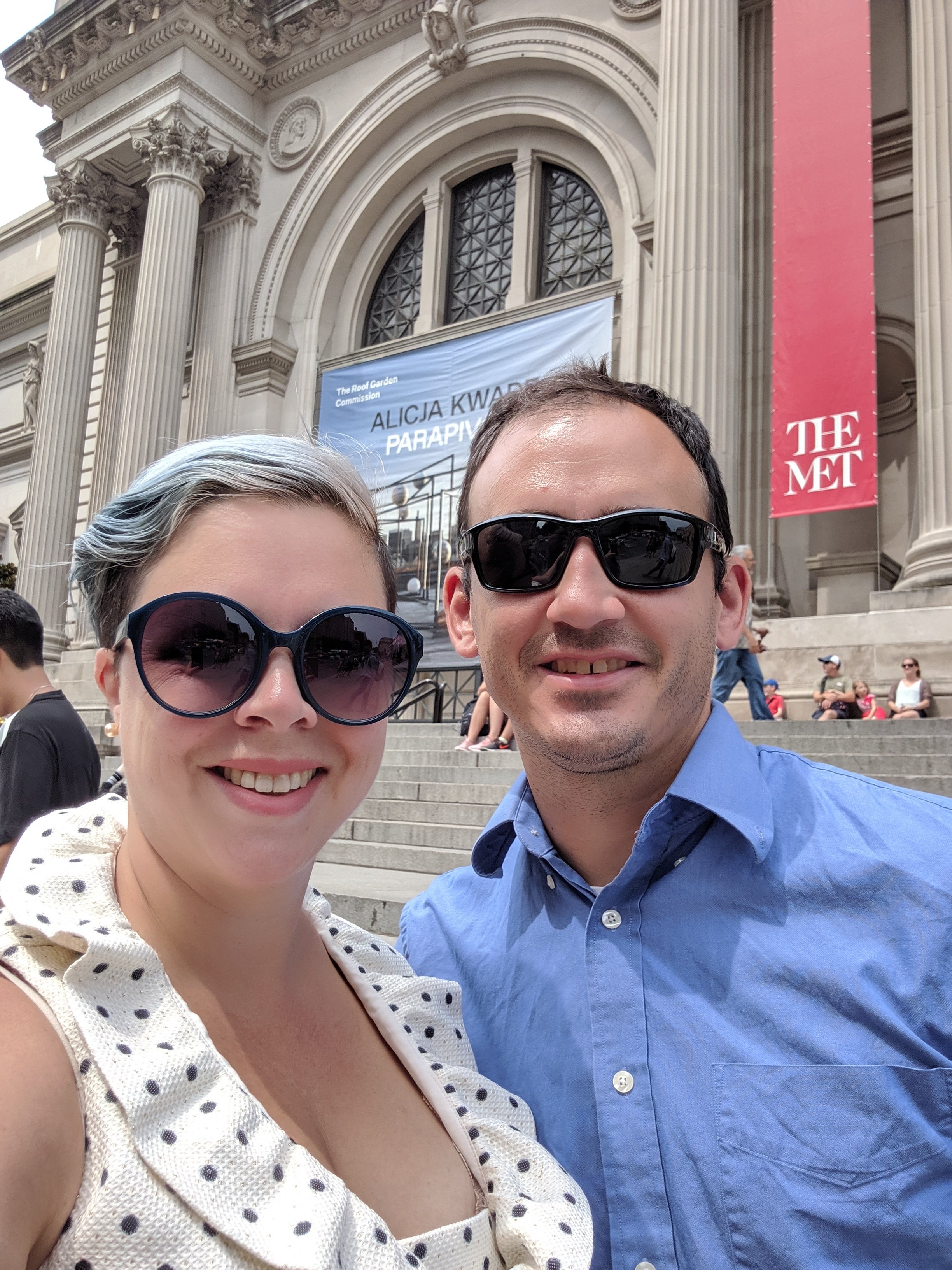 Brekkies at Scotty’s Diner.The Met!Van Gogh’s roses.You really get a sense of motion when you stand in front of these.Bob insisted we go into the Abstract wing, and we were both thrilled to find the Rothkos.This one was my favorite.There was a music exhibit, with instruments, including Ringo Starr’s kit.I insisted we take another selfie outside, for some reason.Central Park love faces.Spicy Margarita (Bob) and the Jagger (me).The Extra Virgin bar.Sant Amboeus.A handsome couple.