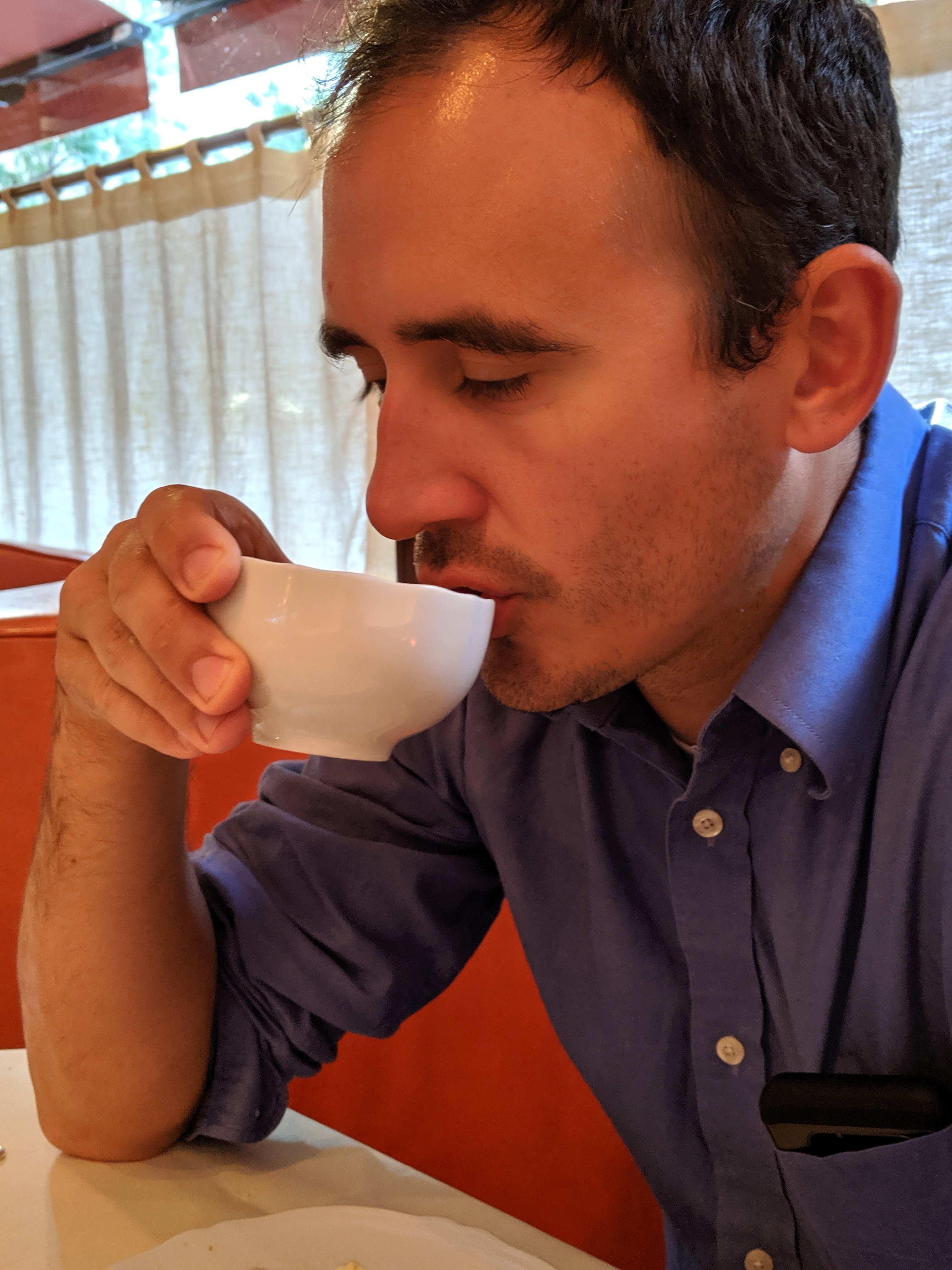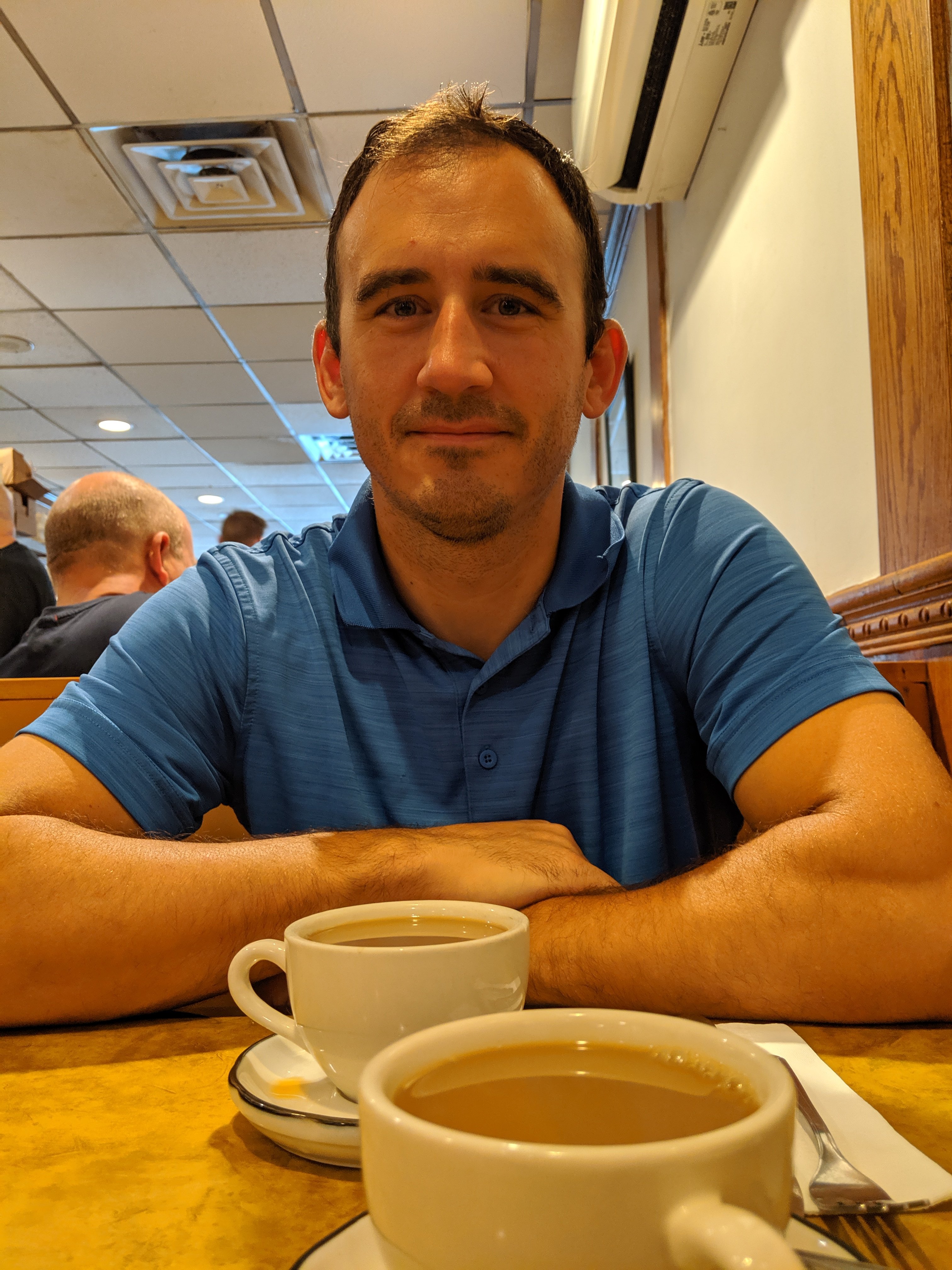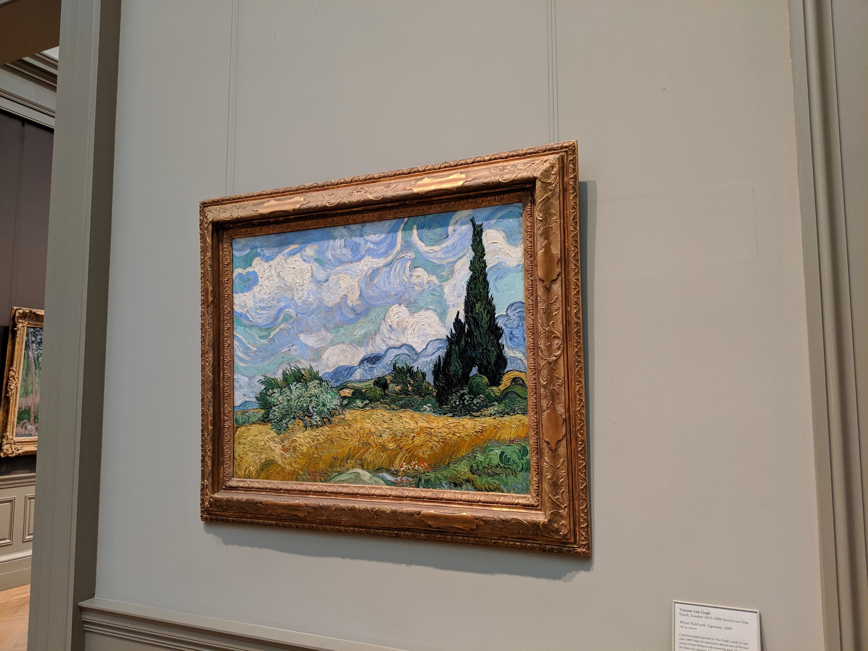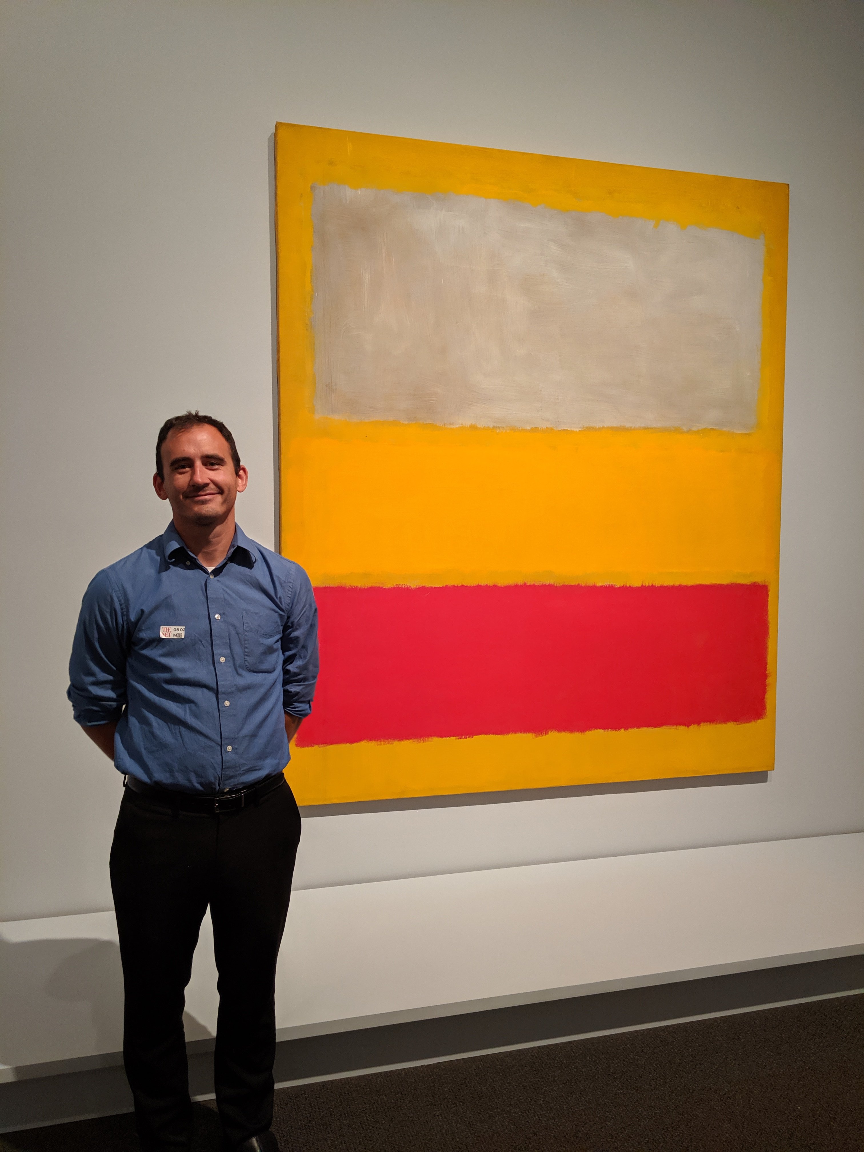 Brekkies at Scotty’s Diner.The Met!Van Gogh’s roses.You really get a sense of motion when you stand in front of these.Bob insisted we go into the Abstract wing, and we were both thrilled to find the Rothkos.This one was my favorite.There was a music exhibit, with instruments, including Ringo Starr’s kit.I insisted we take another selfie outside, for some reason.Central Park love faces.Spicy Margarita (Bob) and the Jagger (me).The Extra Virgin bar.Sant Amboeus.A handsome couple.