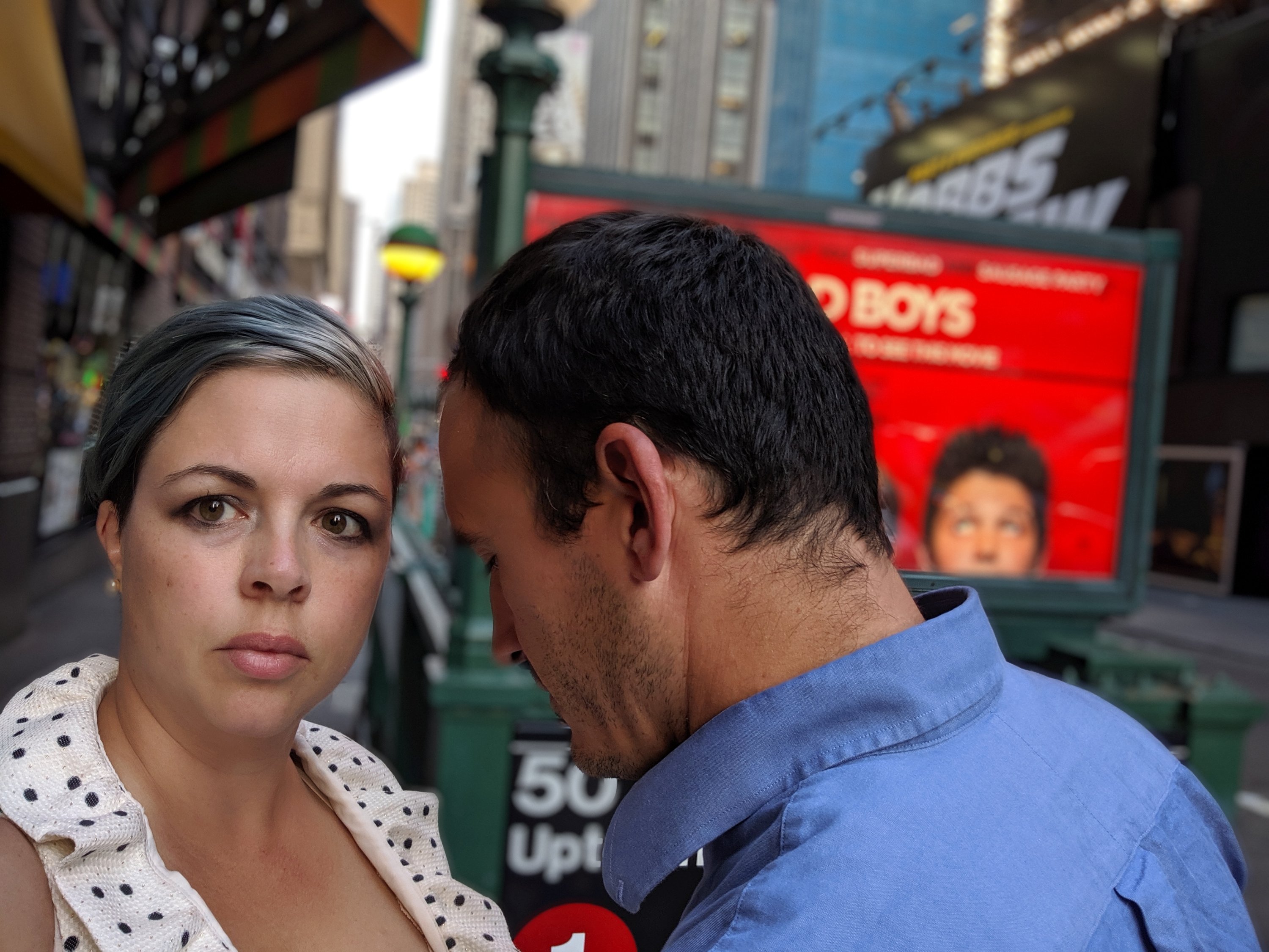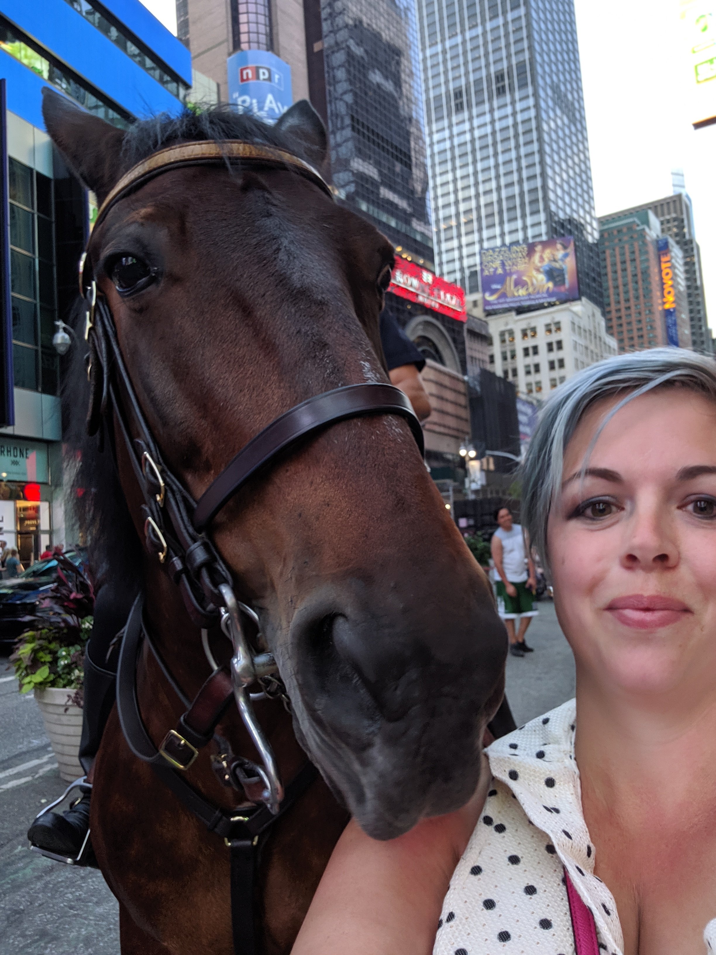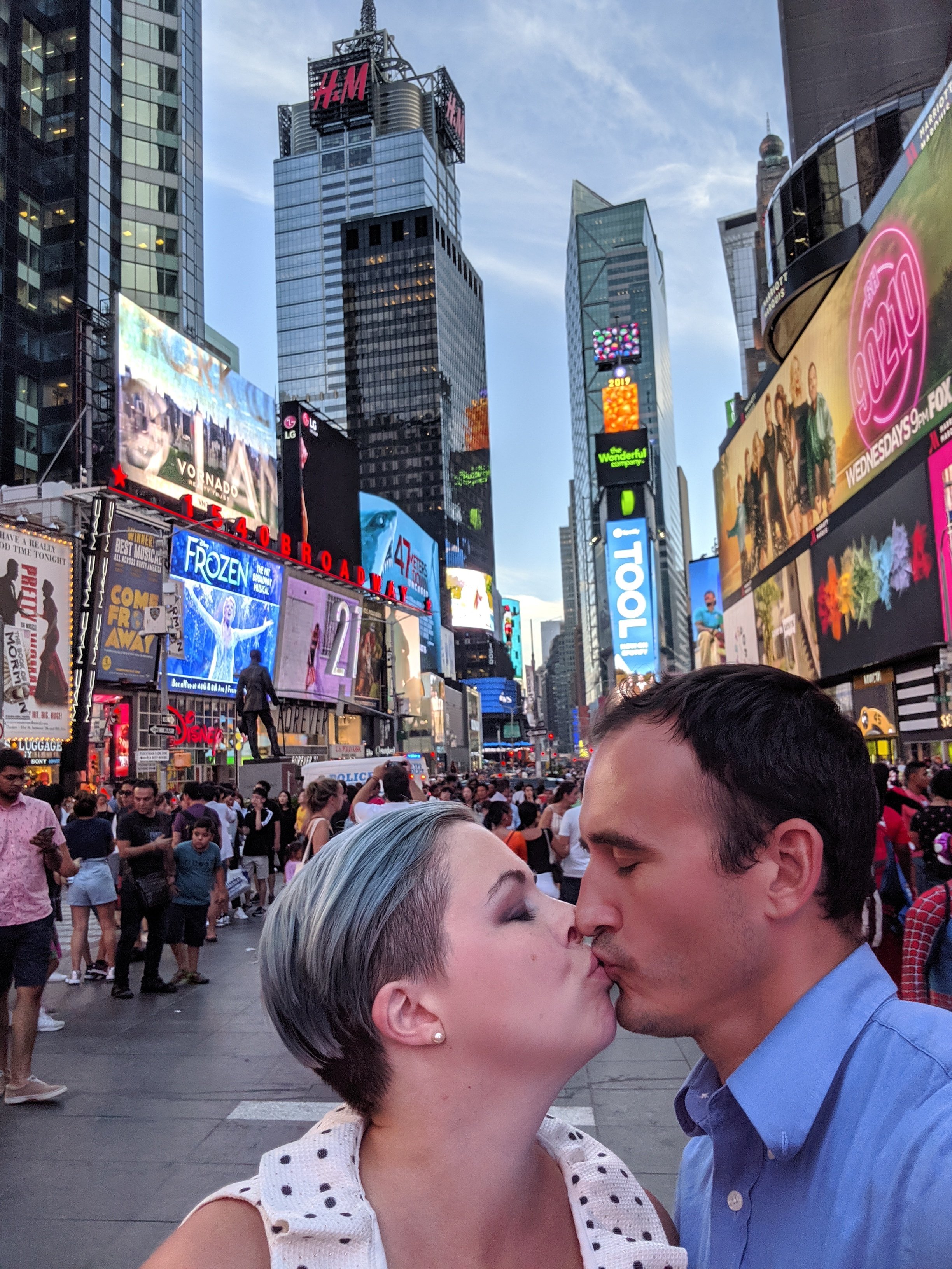 Greenwich Village crossing.Bob so annoyed at the sheer volume of photos I intended to take here.I couldn’t wait, in times square. This was before a horse ate my dress.Damn! Lights!This boy ate my shoulder, his blonde bastard brother ate my dress (I love them both).🥰Eugene O’Neill Theatre, row A.Book of Mormon.It gets super disco gay, which is appropriate since we went to the Camp exhibit earlier.Bryant Park / NY Public Library.A handsome man at the park at night.