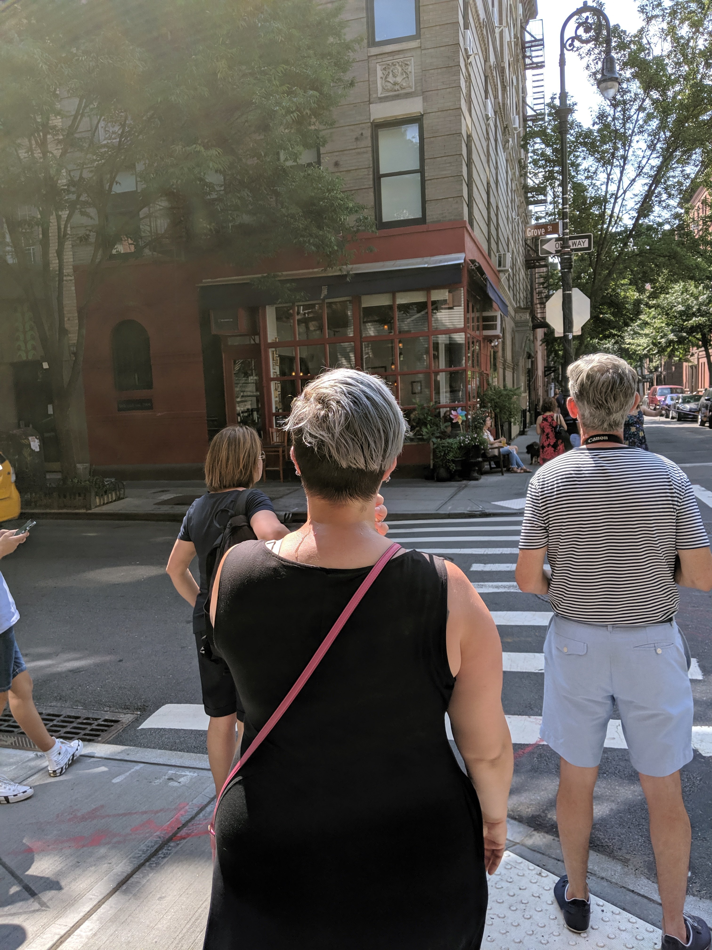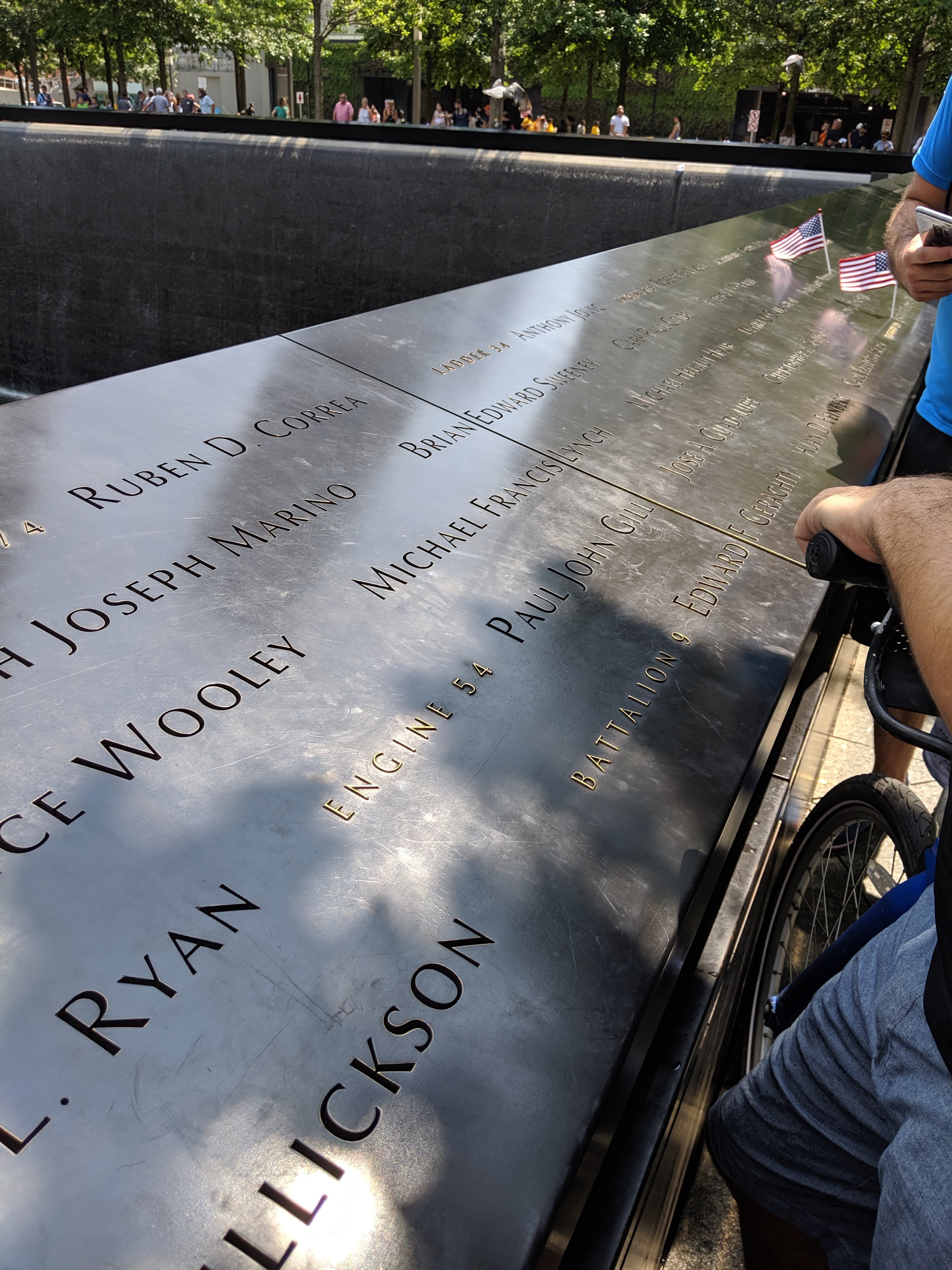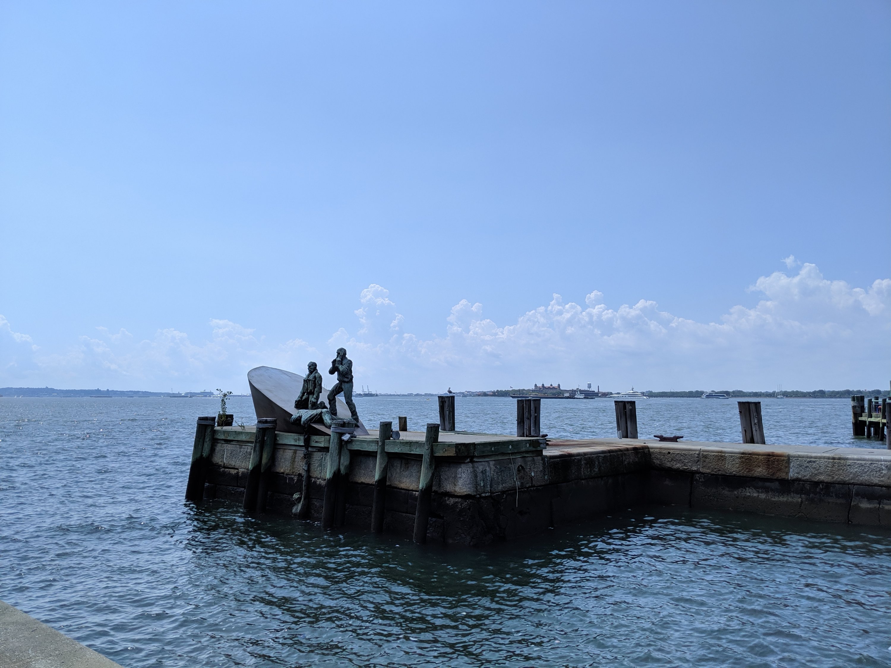Since we were in the area, we walked by the Friends apartment.Admiring the Friends building.Merchant marine memorial, which is eerie.Outside Battery Park.We biked a little more than five miles from Battery Park to Hell’s Kitchen on this lovely bike path.World Trade Center memorial.