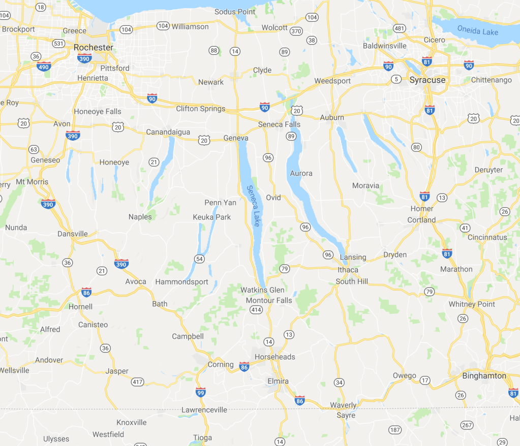This weekend, Bob and I took an overnight trip to the Finger Lakes. If you’re not familiar with the Finger Lakes, you are missing out. The Finger Lakes are a series of lakes in central NY created by receding glaciers. They’re deep and narrow, and they look kinda like fingers, hence the name.