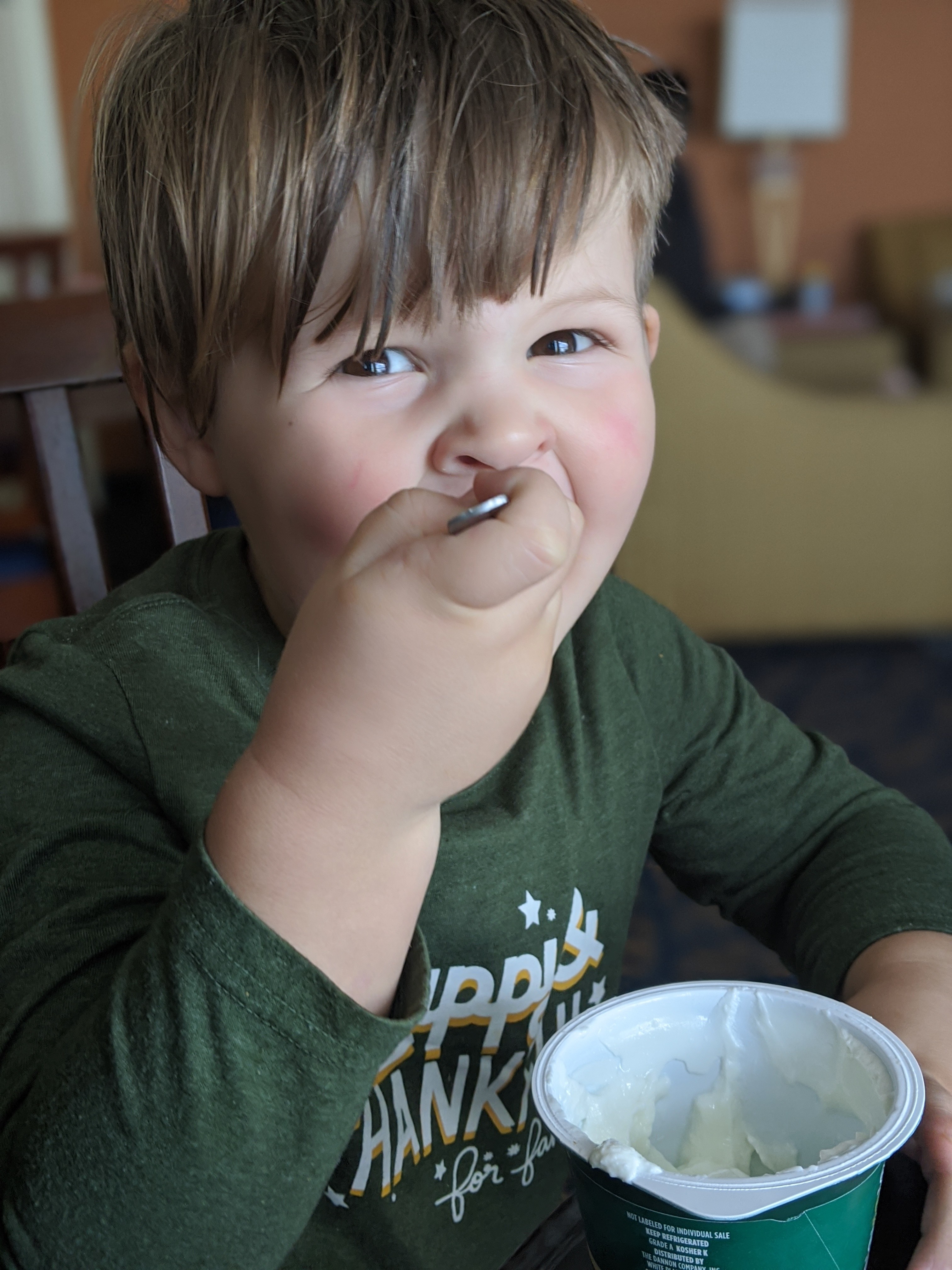 When he arrives, he skirts around the bed to my side and pats me insistently. I sit up and let him crawl in, then shove him further over (because he always chooses the exact center of my pillow to rest his head). The last few nights as I’ve settled back down and fluffed the duvet around us, he’s said “mama? Mom? I love you mom.” And any thought I had of carrying him back to his own bed drifts away as I say “I love you too baby.” He doesn’t let me call him “baby” most of the time, now. He says “I’m not a baby! I’m Grant!” See also “I’m not a lovey! I’m Grant!” But when he’s relieved that he’s sleeping in the big bed, he lets it go.