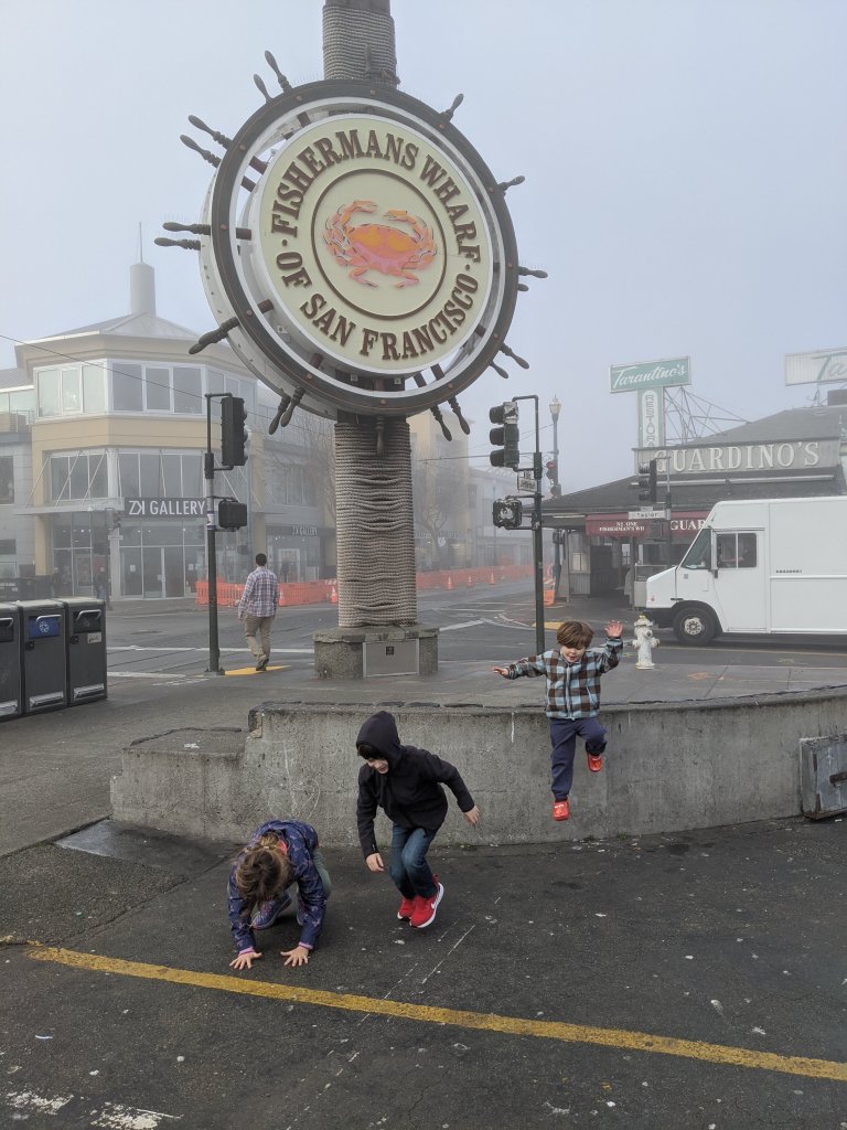 In the foggy courtyard while waiting for brekkies.I saw infinity!We did this about a million times. We all liked this one best. Fishermen’s Grotto. Fisherwomen can get bent, apparently. I liked the post. Top one taken the afternoon before. Bottom one in the morning. Succulent seal.Fog City. Coupla twinsThis mirror was mind bending.Grant looked for fish in this thing that was not an aquarium. Ancient courses of the Mississippi.Bay bridge.A display wall.Grant loves making peace signs.I think this is a vibe we can all strongly agree with.This was about 10 feet tall.This is made of toothpicks!Lobster bisque in a sourdough bowl at fisherman’s wharf, and I took the least appetizing photo of it. My big kids ❤️We ended our adventures with some Ben & Jerry’s.