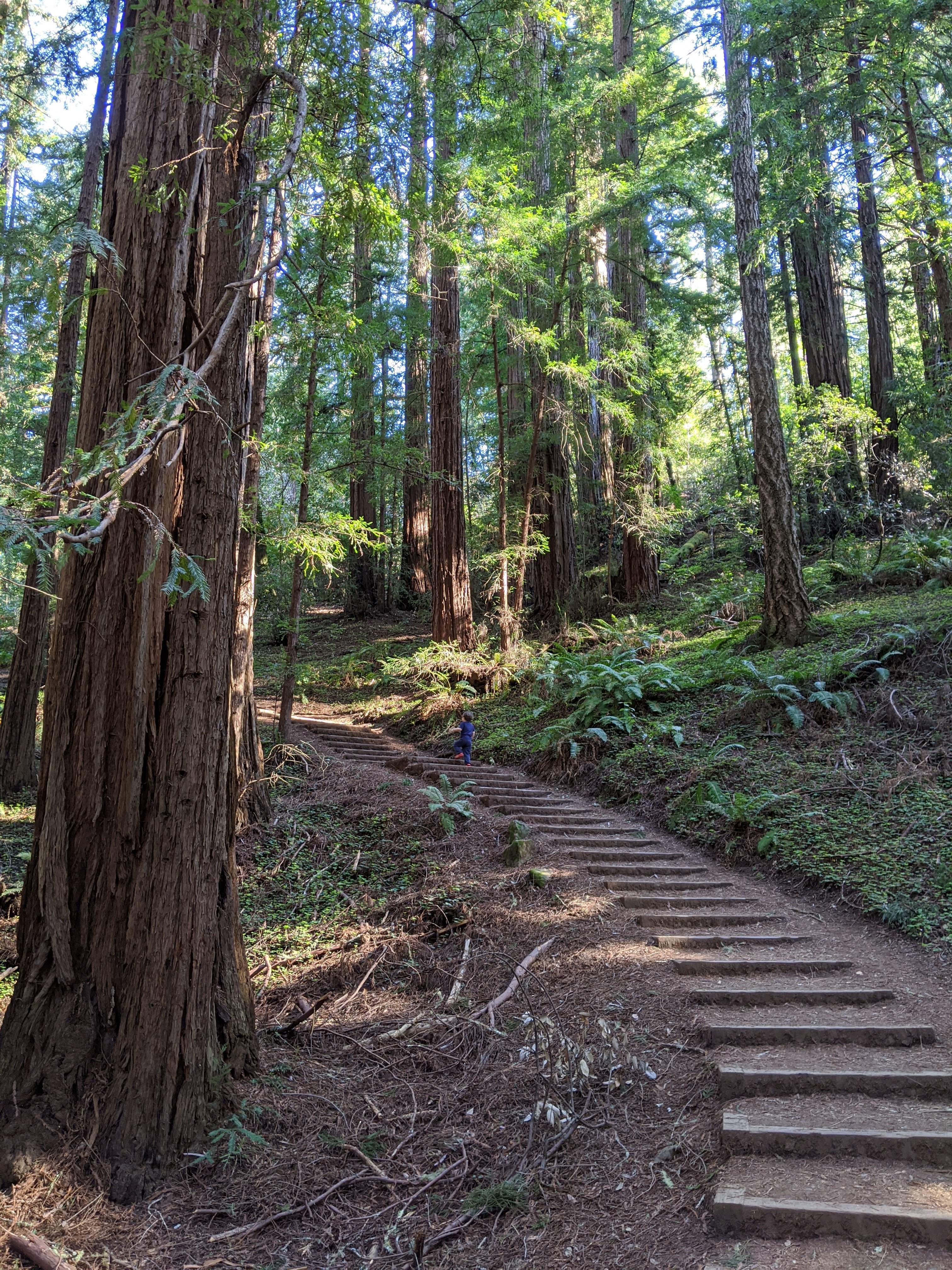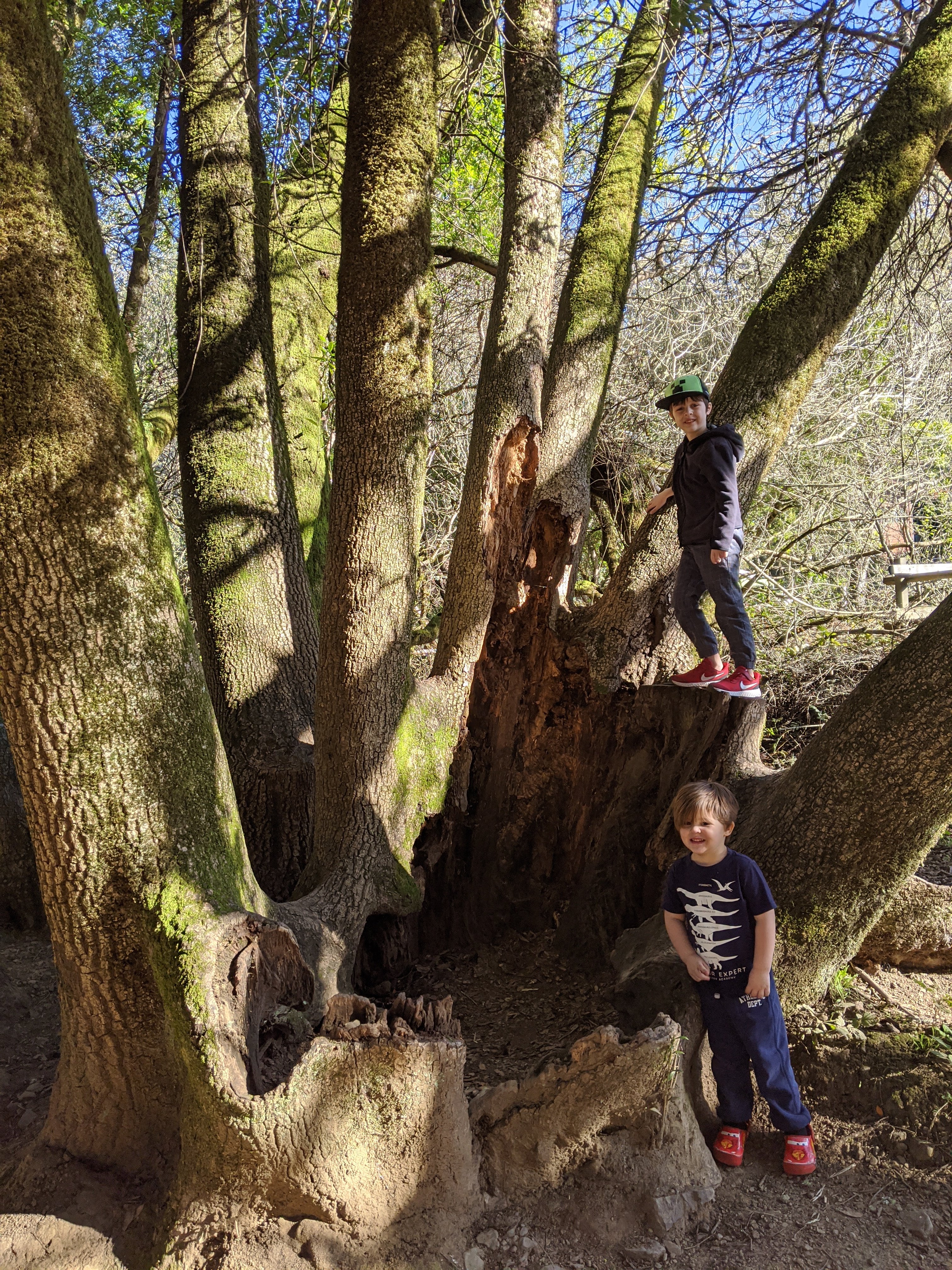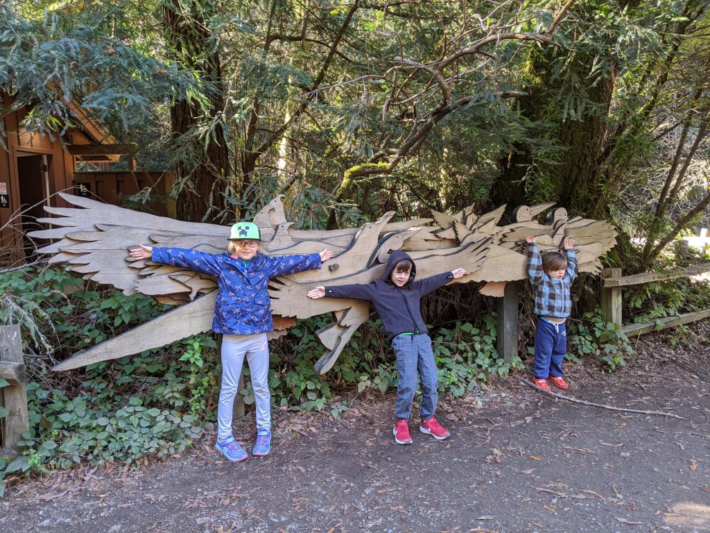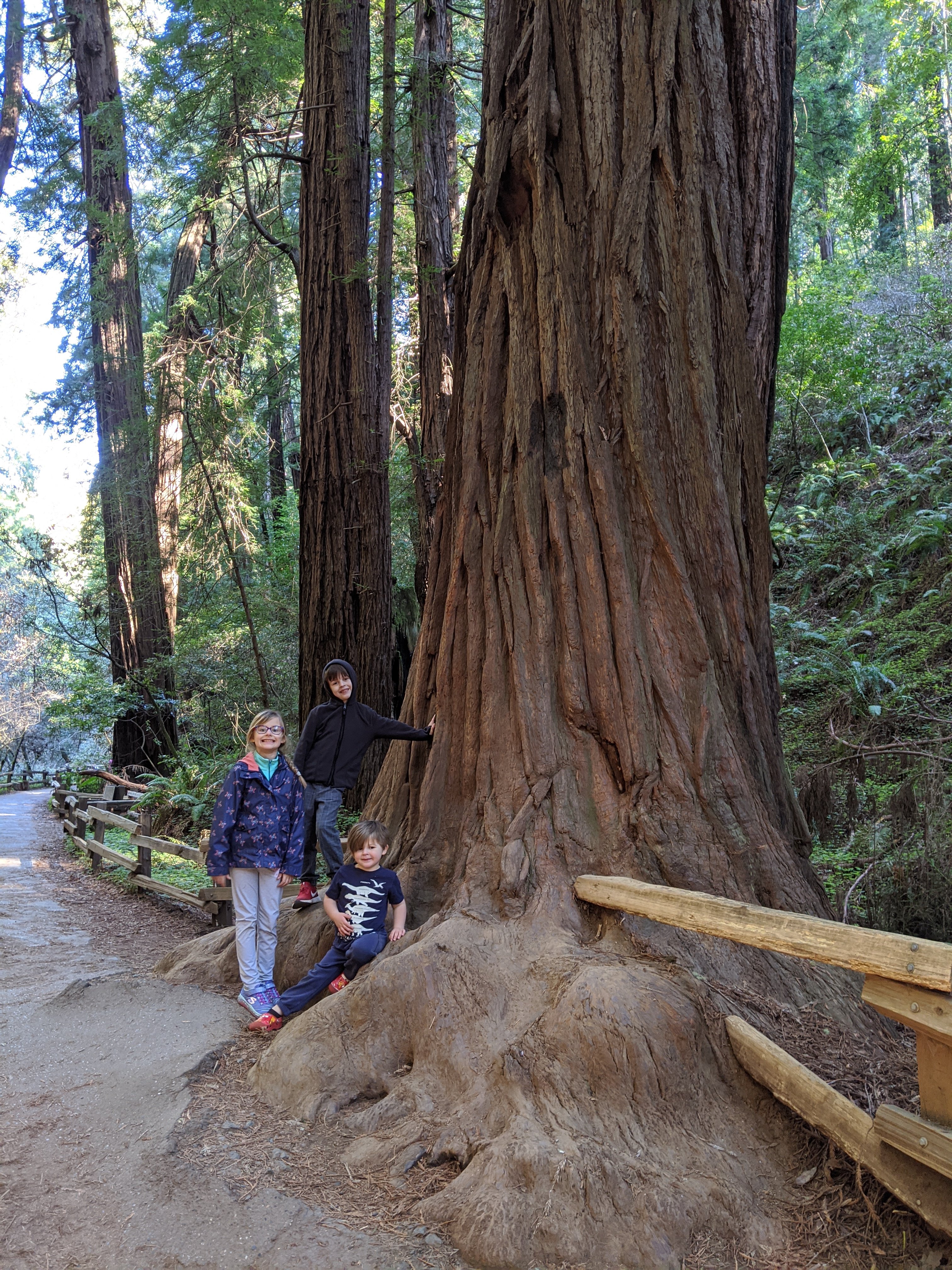 We drove out of San Francisco early and after driving across the Golden Gate Bridge, we quickly exited to get to Marin Headlands. The views were amazing! After a little running around there, we had to hustle to Muir Woods, because we had a reservation for parking. In the woods we went for a hike. Grant fell on the trail at one point and cut his palm. That really put a damper on his sails for awhile. After the majesty of the woods, we drove inland a bit to get to Lodi. We drove down Napa valley and ooohed and aahed at all the grape fields. In Lodi we went to a winery for a tasting, and planned ahead so we went to one with a playground. The kids had fun playing while Bob and I enjoyed some wine in the sun. We ate dinner at a winery in town, then headed to the hotel to sleep after a very packed day. Selected photos: