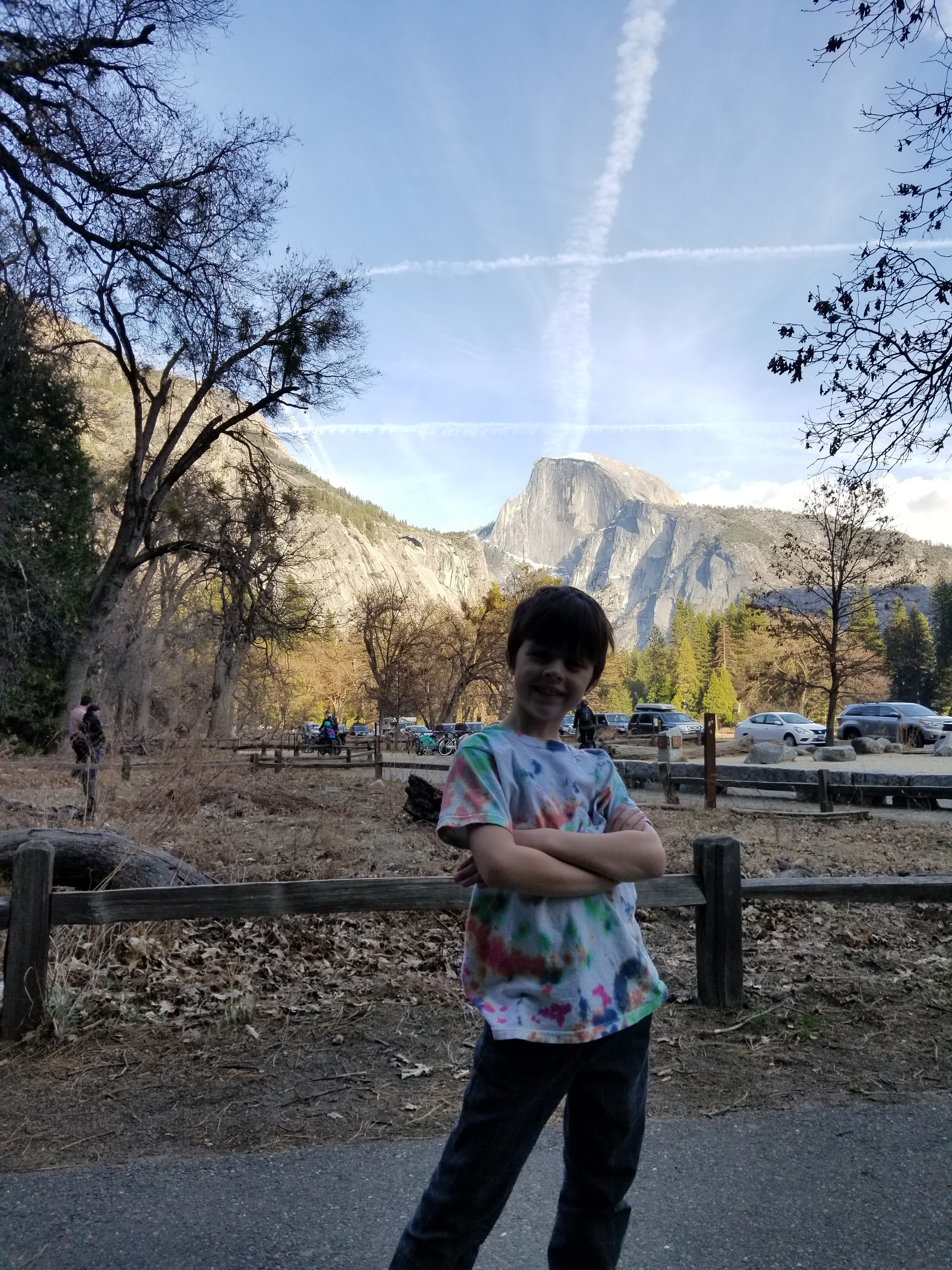 Kids in front of Half Dome.