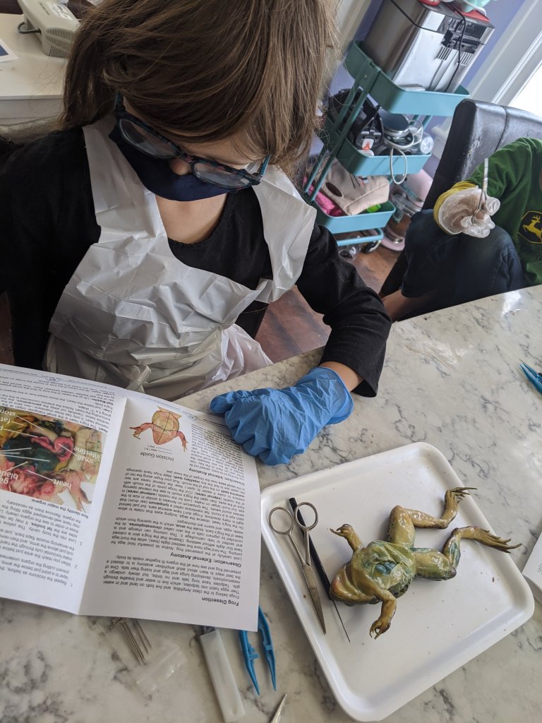 First was dissecting starfish, then frogs. Ele asked for frog dissection for her birthday.