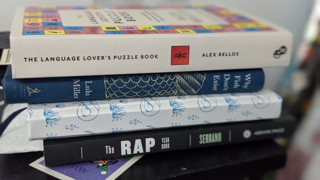 Yesterday I unexpectedly smelled a book. I was holding up a book for Eleanor to take a photo of (for school), and to be a little silly I held it right under my nose so my nose might be in the picture, too. It wasn’t in the picture. But I smelled cheap paperback for the first time in a very, very long time. It smelled divine. It instantly took me a million places: elementary school; the Scholastic book fair; days spent loitering on a couch reading dusty, worn out paperbacks from the library; packing and unpacking boxes of books for various moves; dropping books into the bath; dropping books onto my face when I fall asleep reading. I have so many memories of books, because I always like a book close by. It’s comforting to have a book available, and the unspoiled potential of a new book is right up there with life’s top pleasures. I haven’t been able to read as much as I’d like during the last year or so; deep dread and anxiety have wrecked my focus and made it really hard to read in a sustained manner. But I’ve always kept books at hand, just in case.