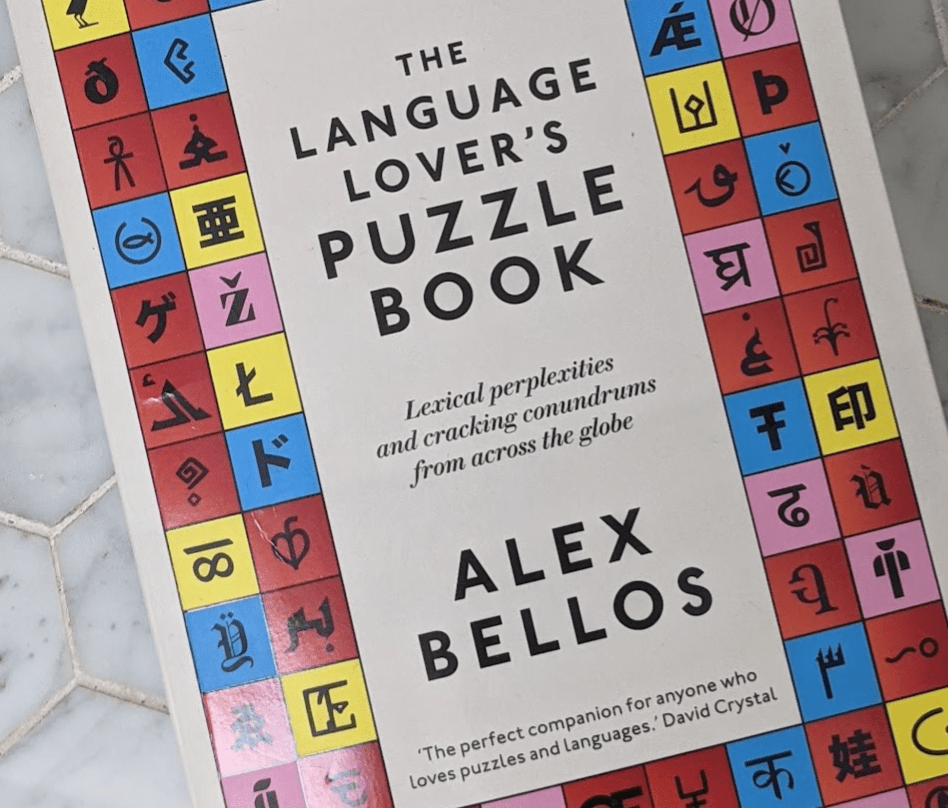 But I’ve found myself actually trying to get people to read this book, The Language Lover’s Puzzle Book, by Alex Bellos. I’ve been compelled to talk to people about it. Actively! This is very unlike me! Every couple years, there’s a book that I try to force people to read, and good news everyone, this time it’s this book.