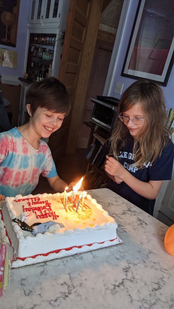 Today we will do some light trick-or-treating in our neighborhood, and tomorrow we will give the twins the gifts we got them. So it’s been a very celebratory couple of days, and I am very tired. But it’s all worth it! It’s strange to see the twins transitioning from little kids towards teenagerism. They’re not not innocent and childlike, but they also are increasingly savvy. It’s a wonderous and weird stage. A mix of stuffies and memes. Talks about puberty (“will it hurt?”) and the Hunger Games (“they are being really mean and should stop that”). Talks about what the cats are thinking and goofy jokes. They’re very invested in the progress of the vaccine availability, and literally jumped for joy in my office when I said the initial approval had happened. They asked how soon they could get it, then Eleanor told me how bacteriophages are used against superbugs. I just love the people they are so much, and I look forward to seeing how they navigate the next year together.