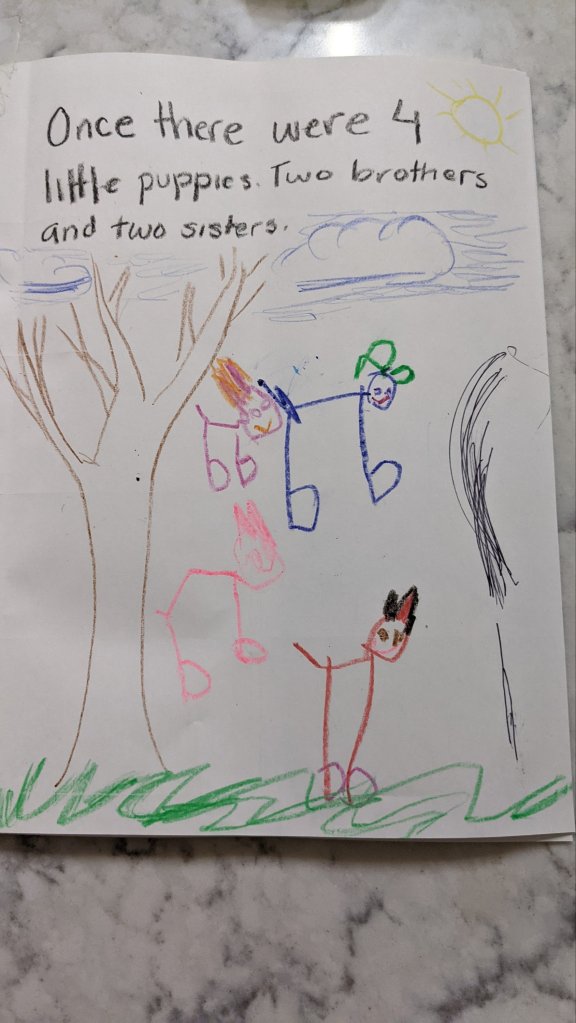 Case in point: he came home from school on Monday and said, “mom, let’s write a story!” And I, up to my arms in cooking dinner and doing dishes, said, “that’s something we can do on the weekend”.
