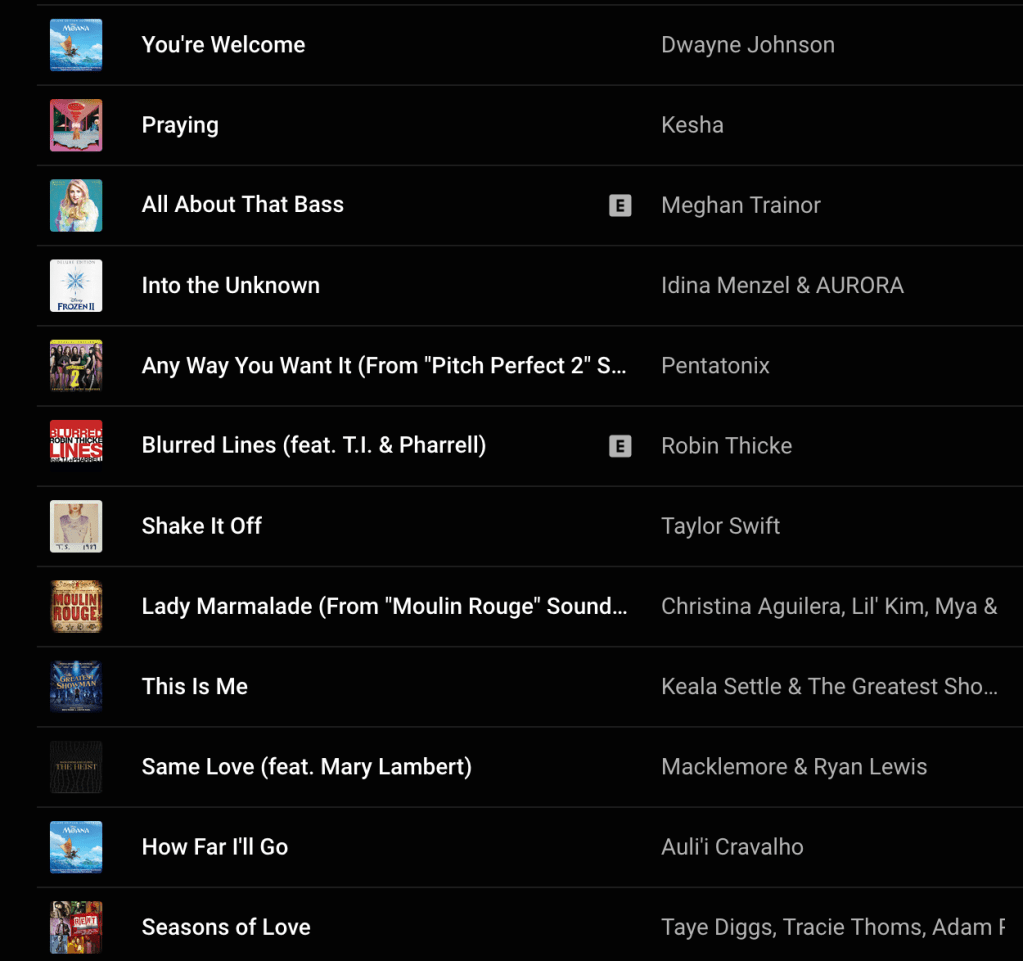 I changed my mind again, and started listening to the Pitch Perfect soundtrack (because I have two ears and a heart), and that went into radio play, which resulted in the following mix. It’s got bouncy, Friday vibes. As the kids would say, it’s serving weekend. Can I also say that the Disney soundtracks are standalone high calibre (I can, and I have). The Frozen soundtracks (Kristen Anderson-Lopez and Robert Lopez, scoring by Christophe Beck) and the Moana soundtrack (Lin-Manuel Miranda, Mark Mancina, and Opetaia Foa’i) in particular are eminently singable and fun. I also love the Moulin Rouge soundtrack and movie; it’s exactly the chaotic profusion of music and story and madness that I want and need. It goes without saying that TSwift has forever been at the top of her game.