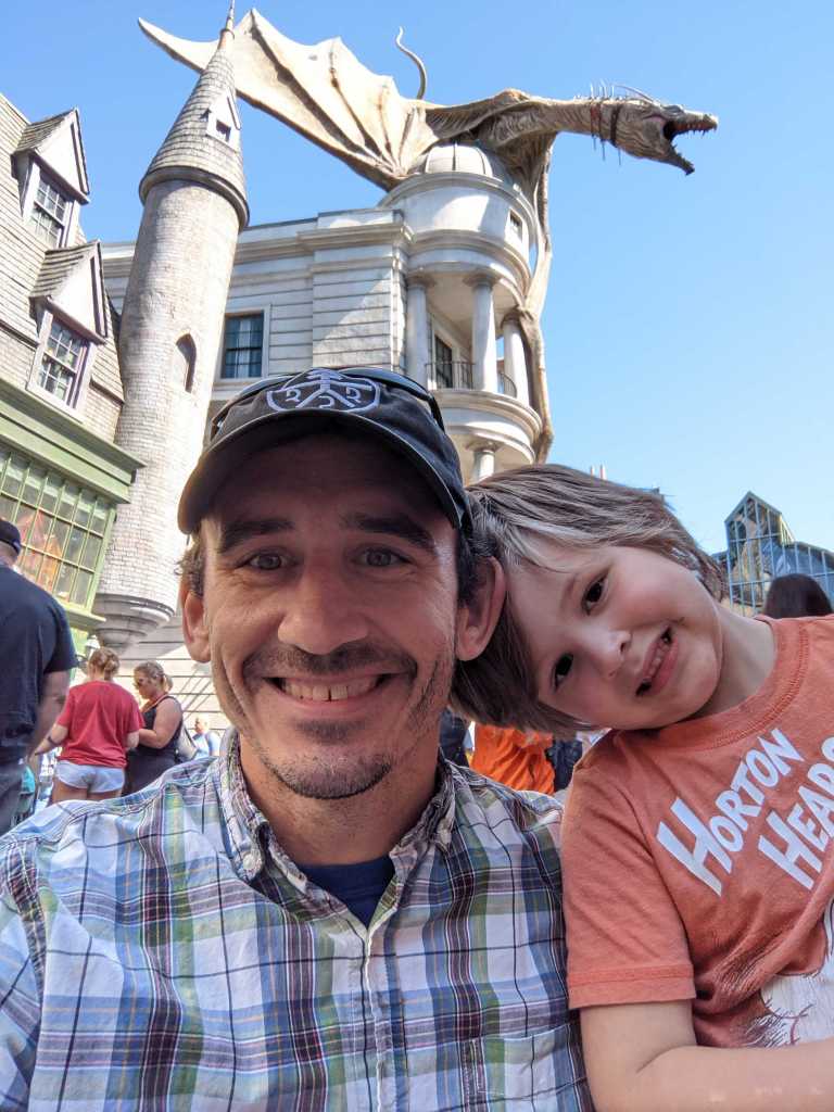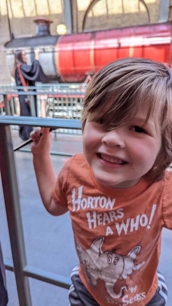 I’m going to tell you where we spent most of our time, but first, an important note: trans people are people, trans rights are human rights, trans women are women, trans men are men. I don’t agree with JK Rowling’s statements saying otherwise. Eleanor has long ago fallen in love with the world of Harry Potter, listening to the audiobooks every night, and reading my old copies of the books often, leaving them jacketless and well-loved. All of us are fond of the stories, and sharing this magic with Eleanor is important to us.