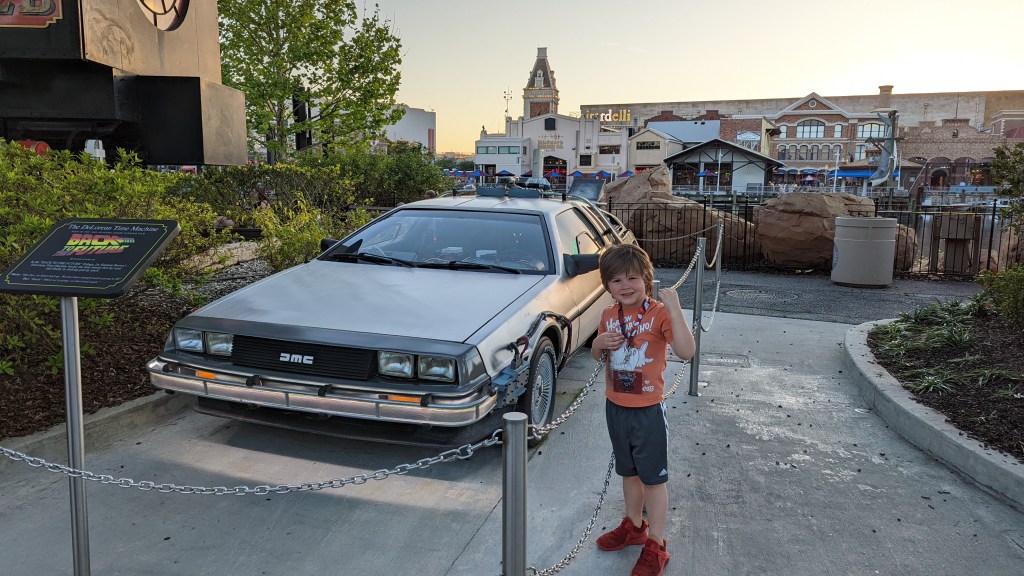 As we were leaving, Henry asked if we could get a picture with the Universal sign. So we tried getting organized (I think we nailed it). You can see in the photo below that Henry is standing patiently waiting, smile already hitched into place.