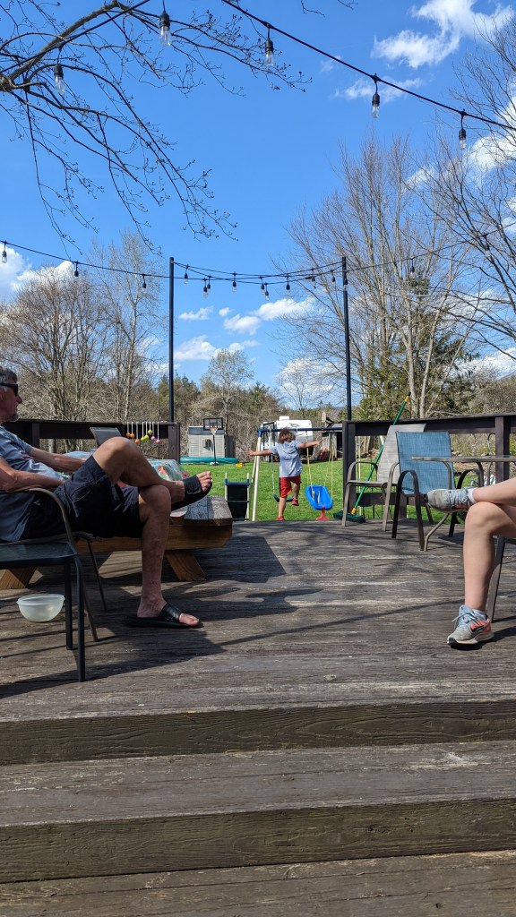 We grabbed breakfast at a diner on the way back to Olean, and went home for a few hours before heading to my in-laws, where the kids had stayed overnight. We gathered the whole family together for a belated Easter egg hunt and a family BBQ, since the weather was absolutely gorgeous.