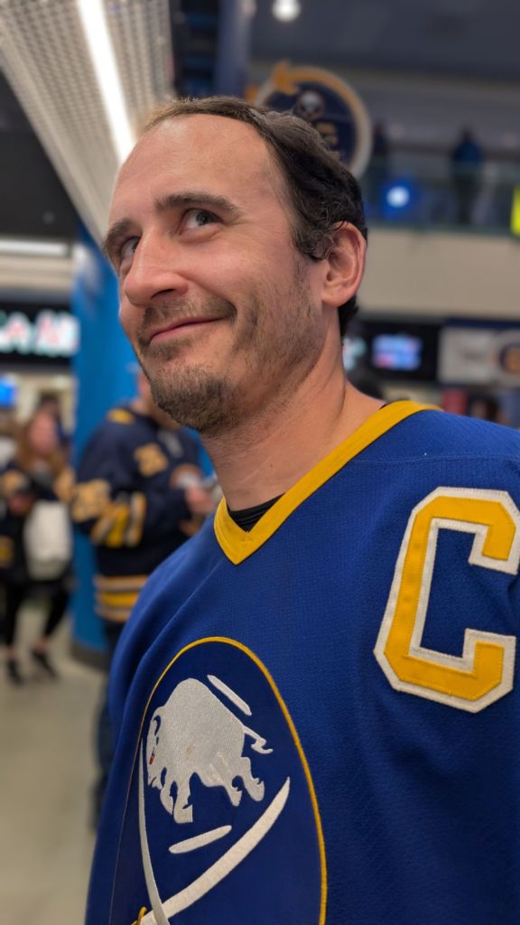 On Saturday nights, Bob and I have been having date nights. That might not work well anymore as the Bills and Sabres ramp up, but for now, it matters a lot to me. This past Saturday, Bob invited me to the Sabres game with him! I loved it so much. The game was fine (they won!) but I loved enjoying it with him. And because I’m me, I chatted with a bunch of the staff at the arena, which I quite enjoyed.