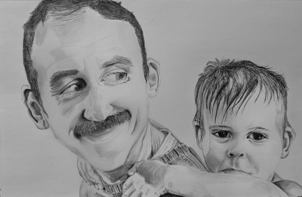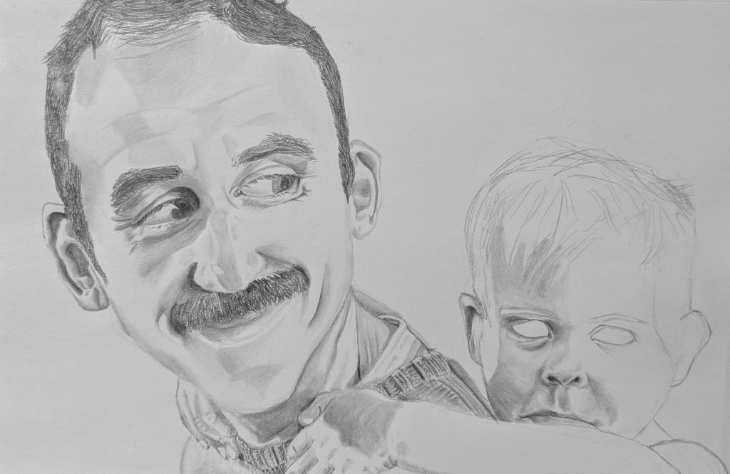 Grant had just had a bath, so he had wet hair – which I do not have experience with, particularly. Also, I really prefer to paint, but I’m not quite there yet. I do like drawing, don’t get me wrong. I just always felt like my strength was in painting. But I think that is probably a limiting belief I’ve held unnecessarily.