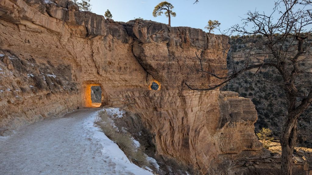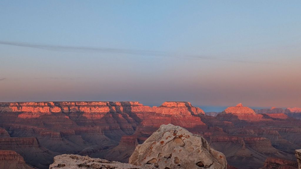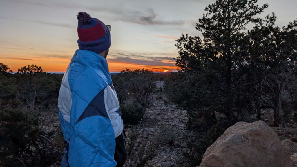 It was something like 39 when we arrived and it was 29 when we got up this morning – and believe me when I tell you it was fucking freezing. 39 and sunny at the GC was lovely! Fingers got cold, but body was warm. 29 in the predawn is unconscionable, and I certainly hope everyone was ashamed of themselves for it. But the GC south rim is also at nearly 7,000 feet in elevation, and Williams was around 6,000 feet, and there simply wasn’t enough air to hold any warmth.