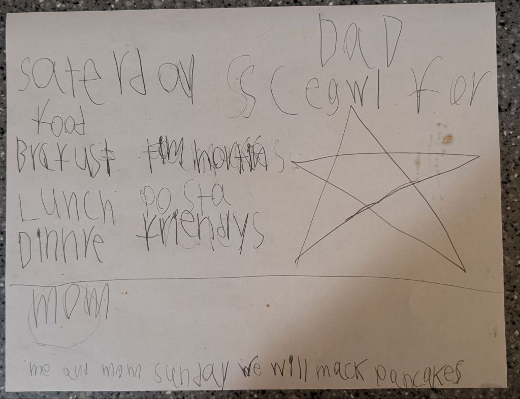 On Monday, he drew up a schedule of how he would like his meals to go over the weekend.